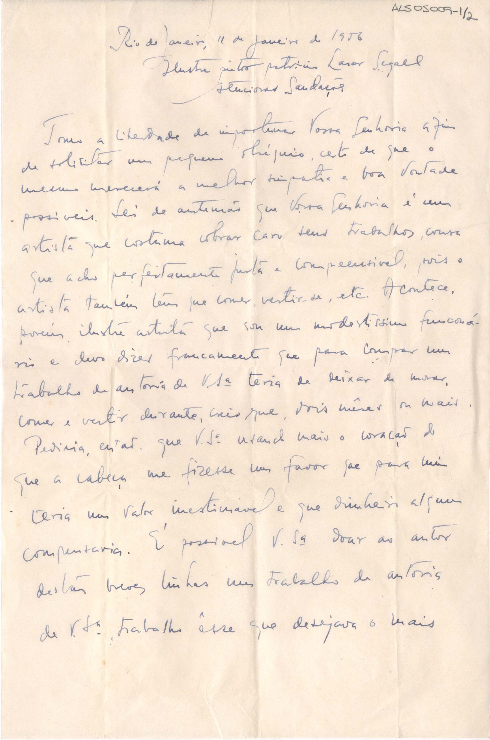 ALS Pasta: (Correspondência para Segall - anos 50 - gaveta 1) [letra Vera dHorta]