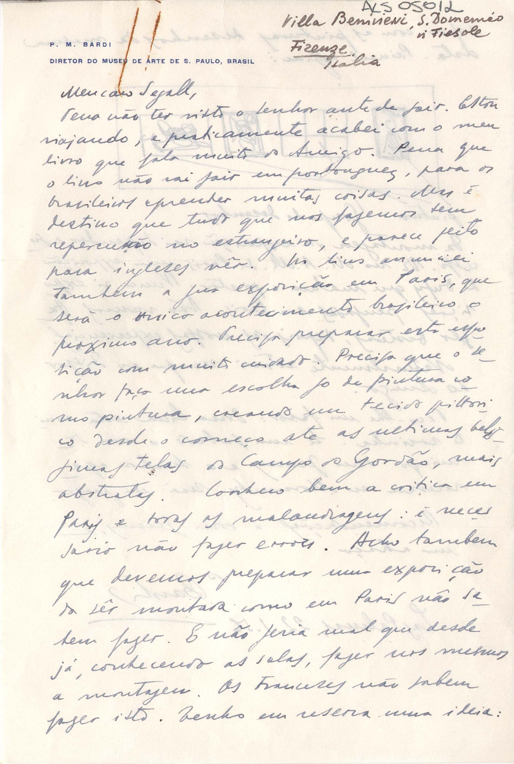 Papel timbrado: "P. M. Bardi Diretor do Museu de Arte de S. Paulo, Brasil"