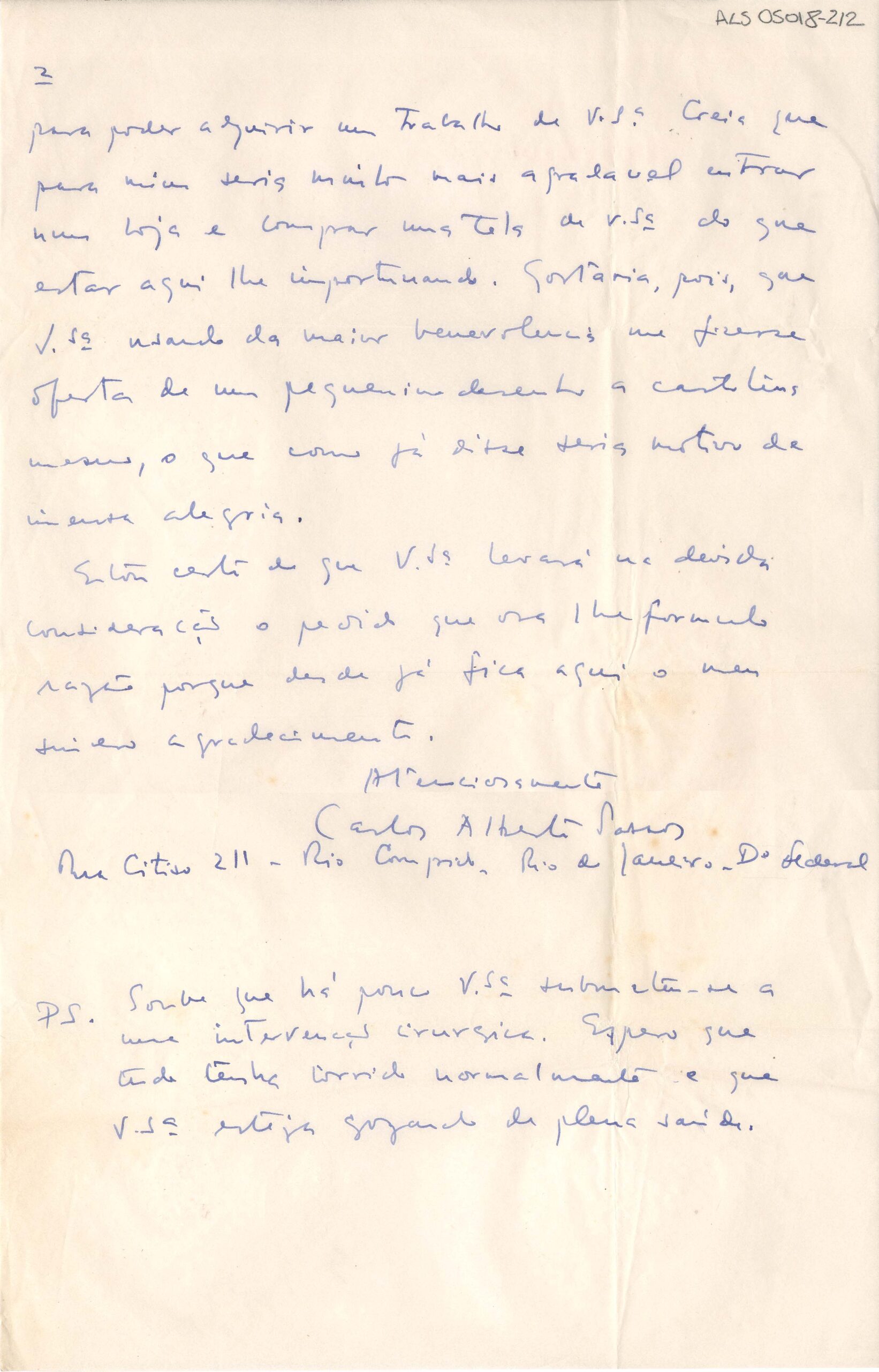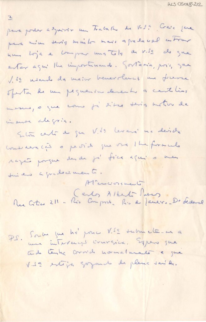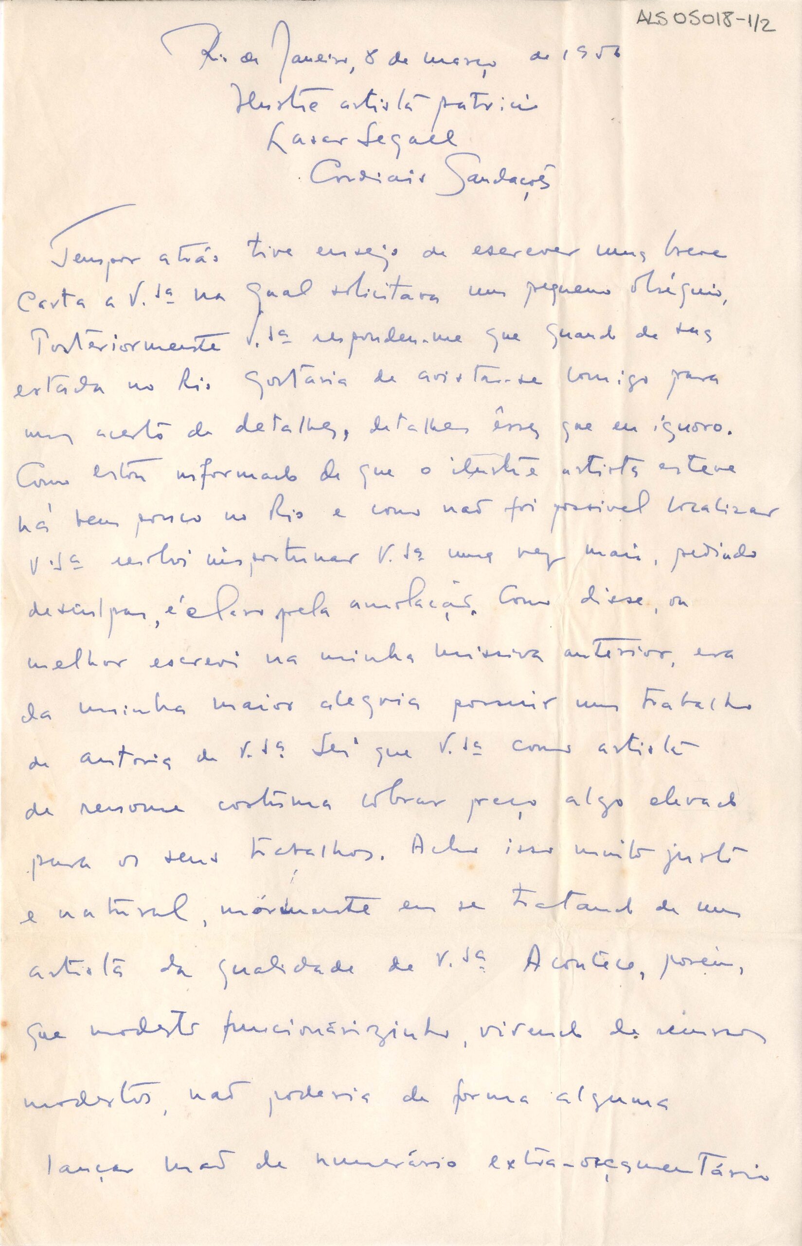 ALS Pasta: (Correspondência para Segall - anos 50 - gaveta 1) [letra Vera dHorta]