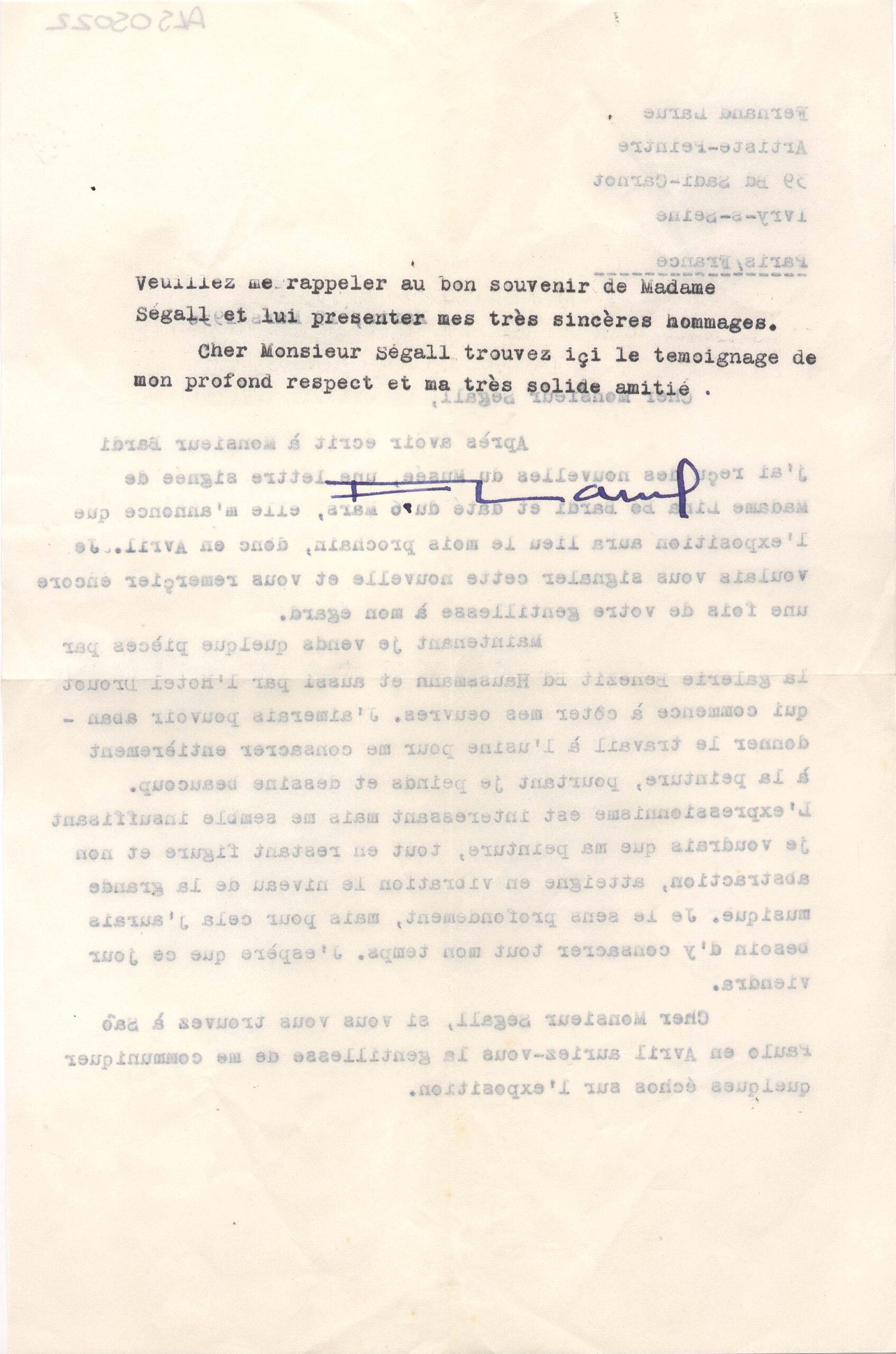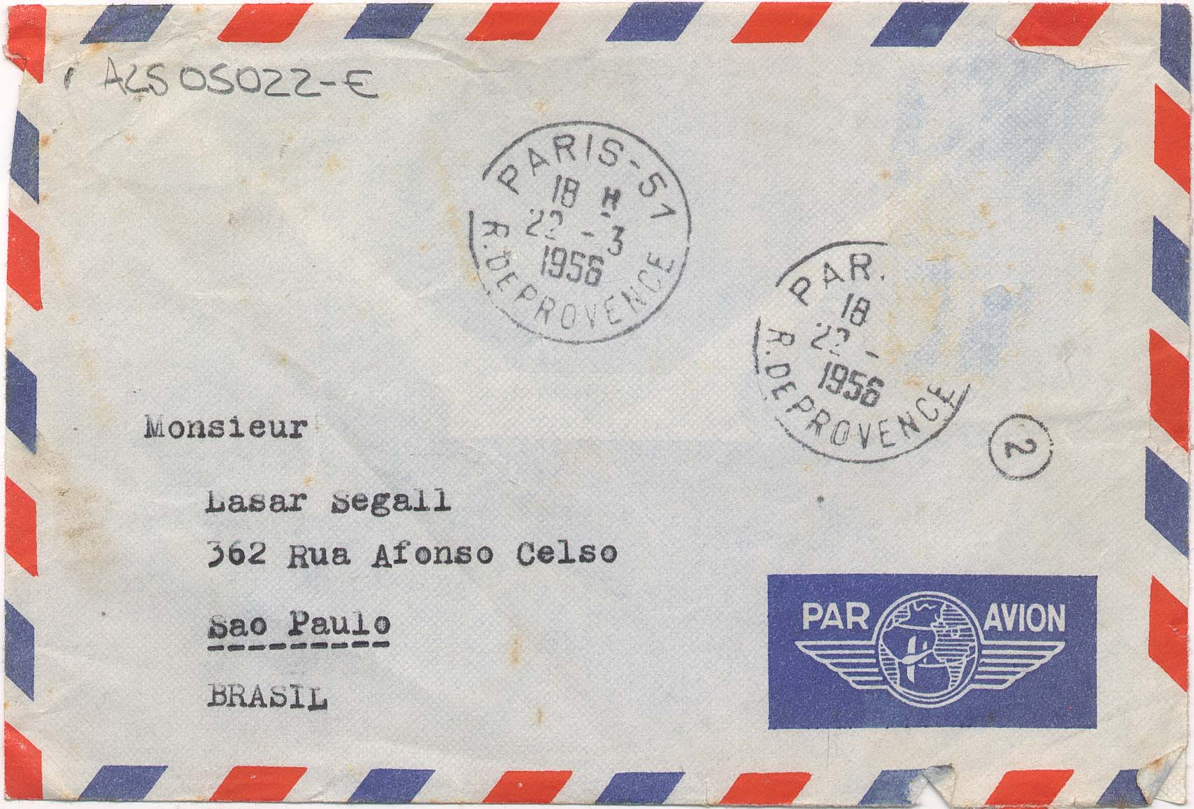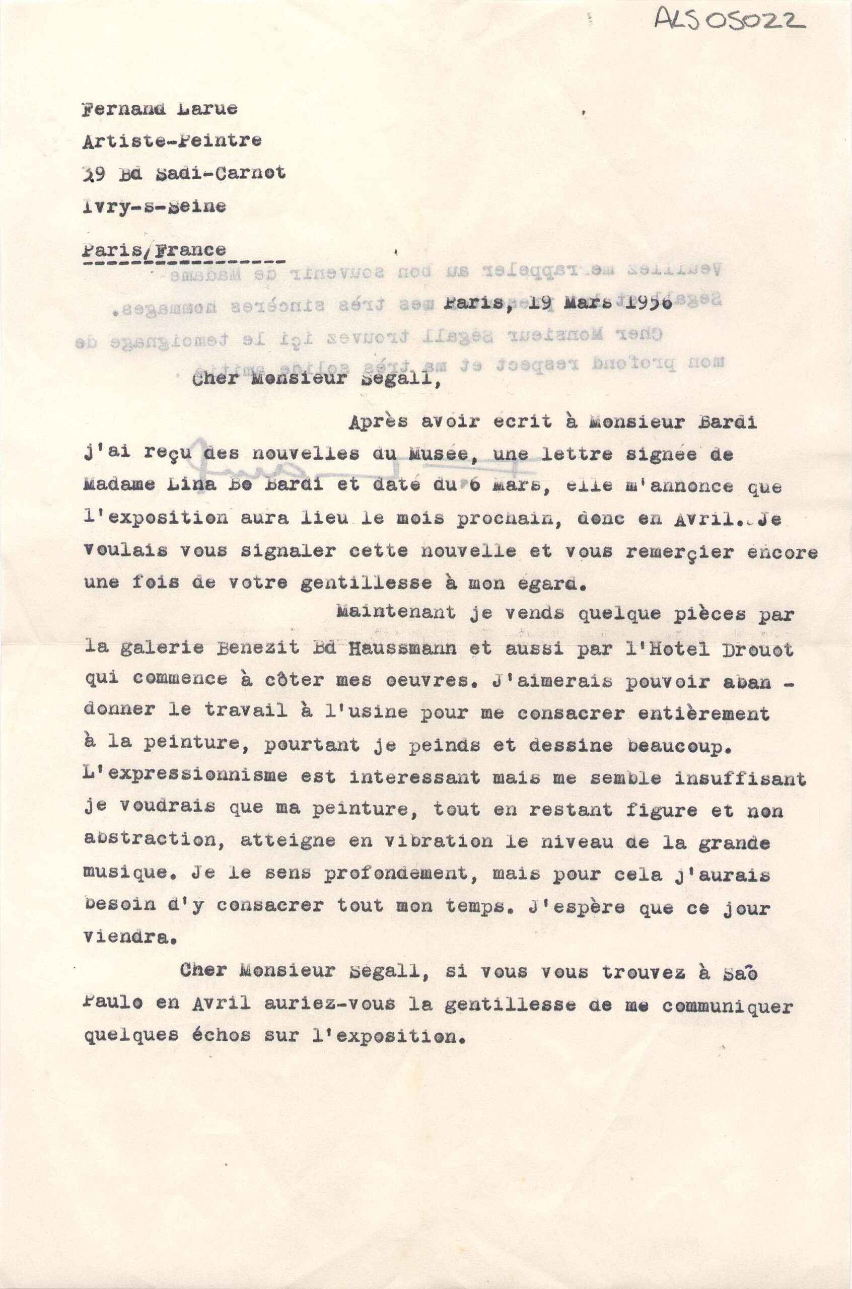 ALS Pasta: (Correspondência para Segall - anos 50 - gaveta 1) [letra Vera dHorta]