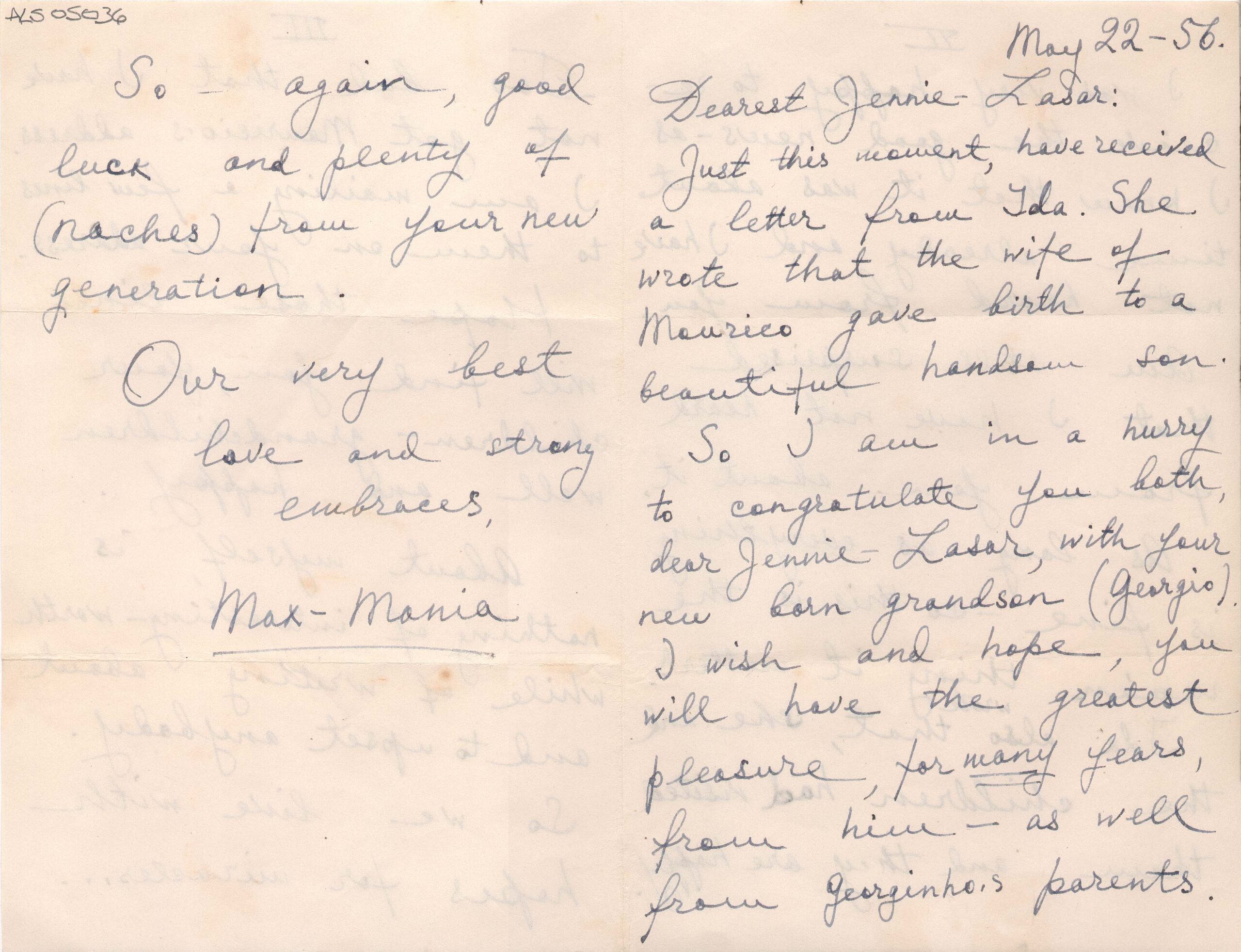 ALS Pasta: (Correspondência para Segall - anos 50 - gaveta 1) [letra Vera dHorta]