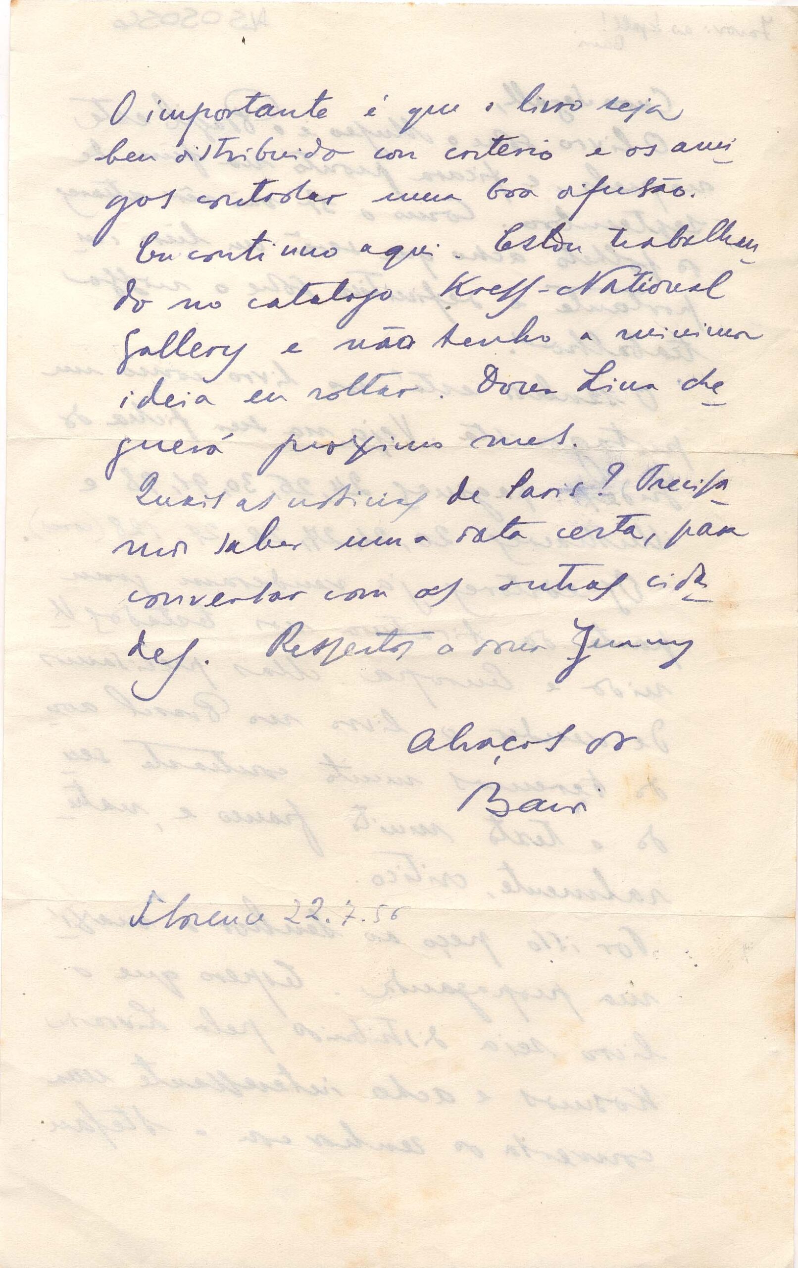 ALS Pasta: "Correspondência: 1952-1953-1954-1955-1956-1957". Bilhete aposto: Correspondência revista por LS 1952 a 1957 [letra FF]