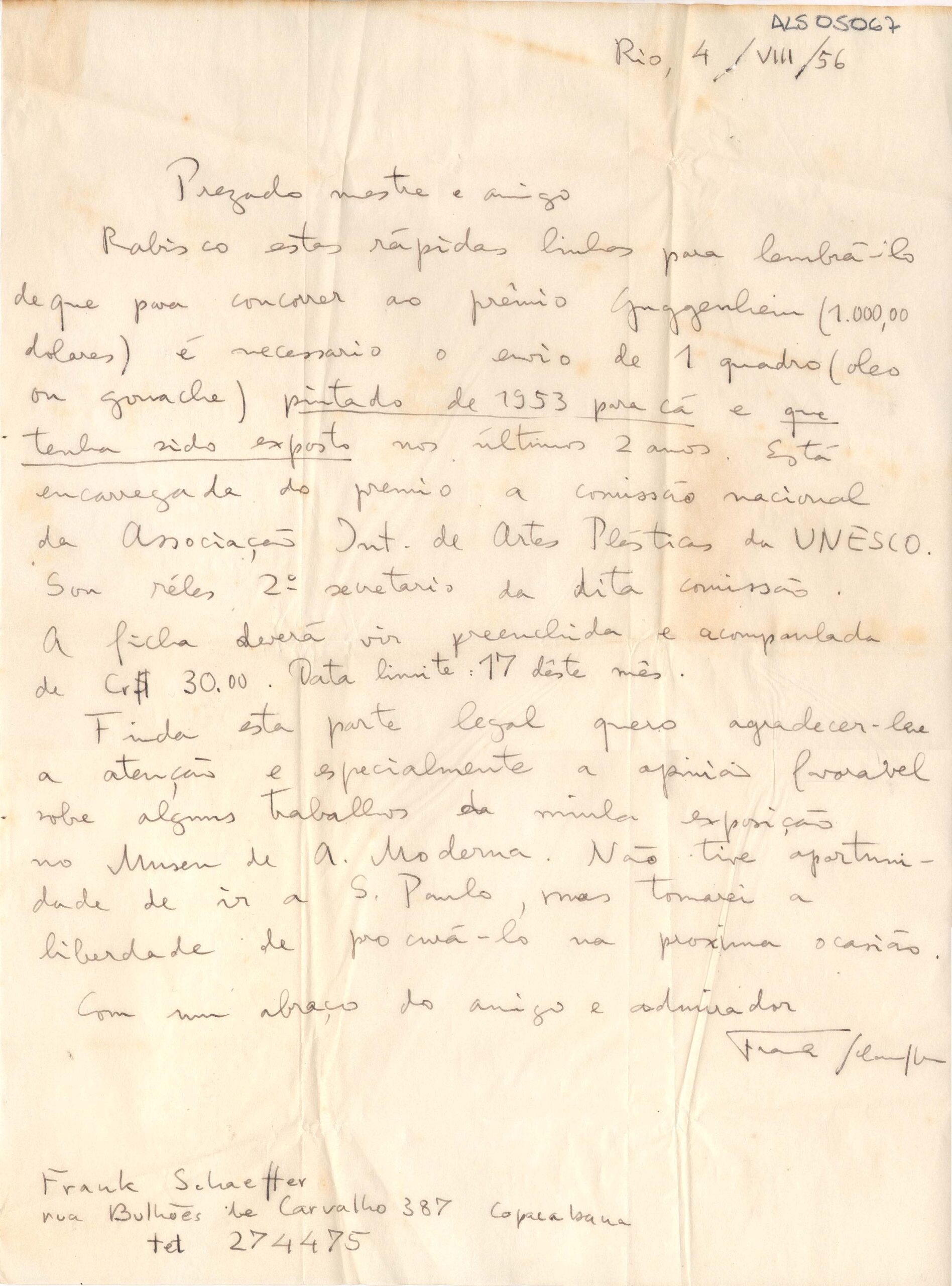 ALS Pasta: "Correspondência para Segall - anos 50 - origem gaveta 4B"