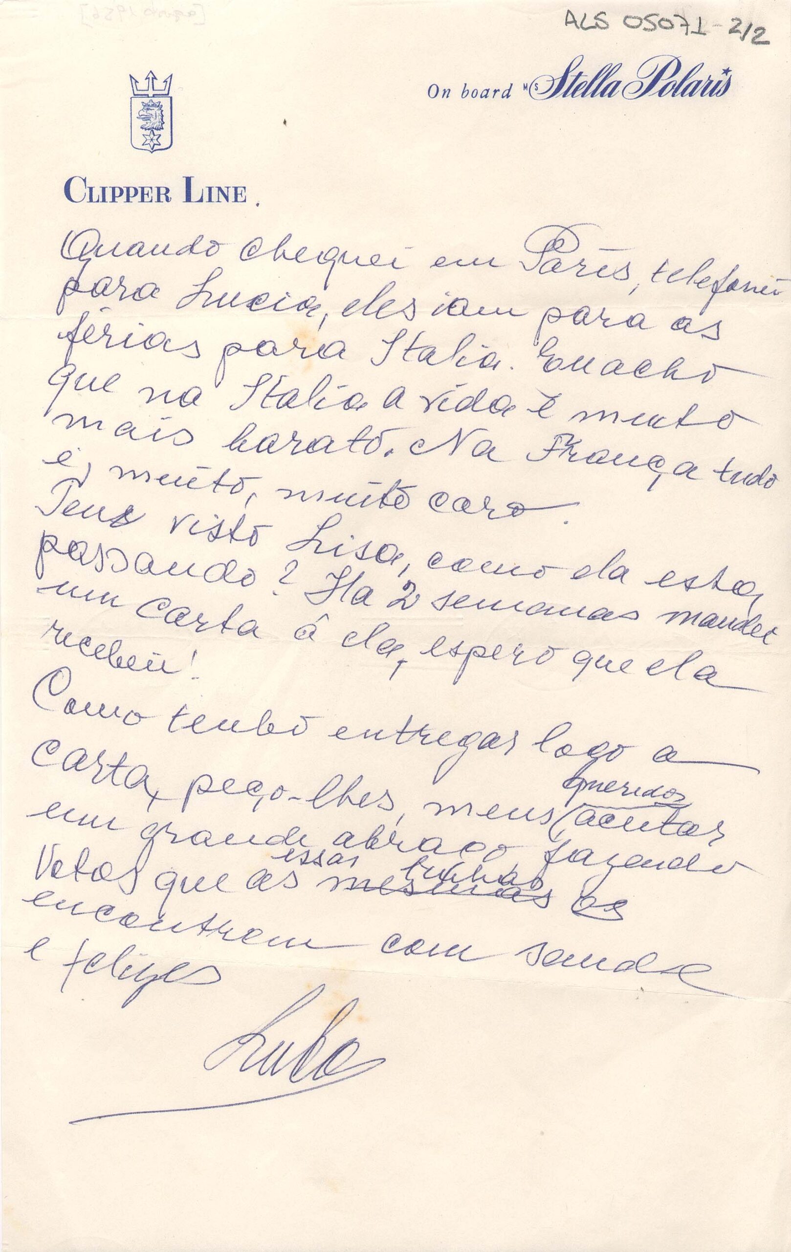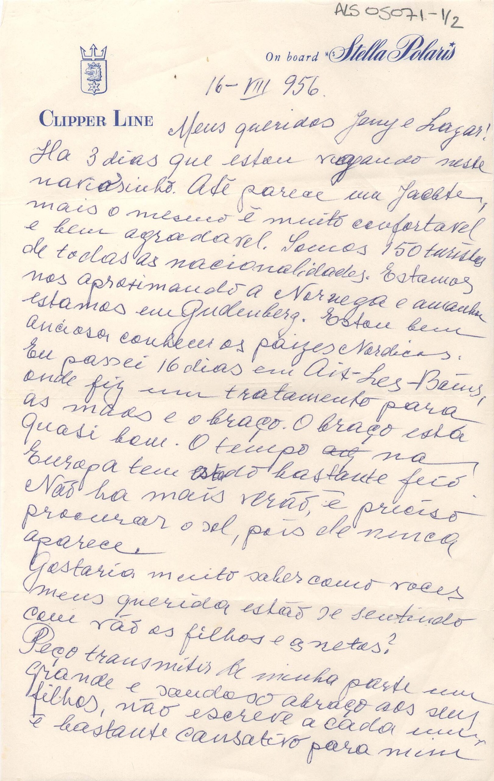 Papel timbrado: "Clipper Line On board Stella Polaris"