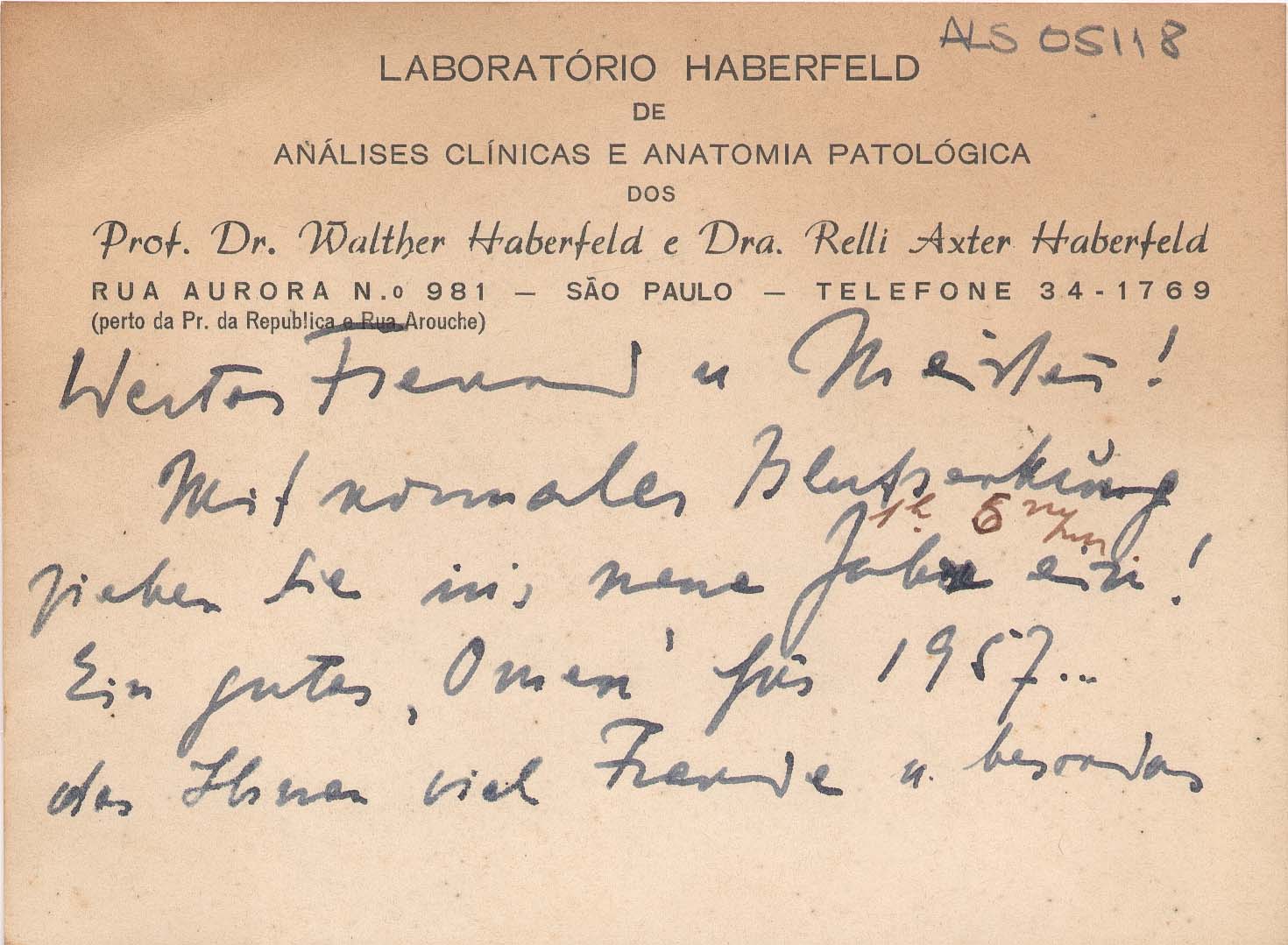 Papel timbrado: "Laboratório Haberfeld de Análises clínicas e anatomia Patológica"