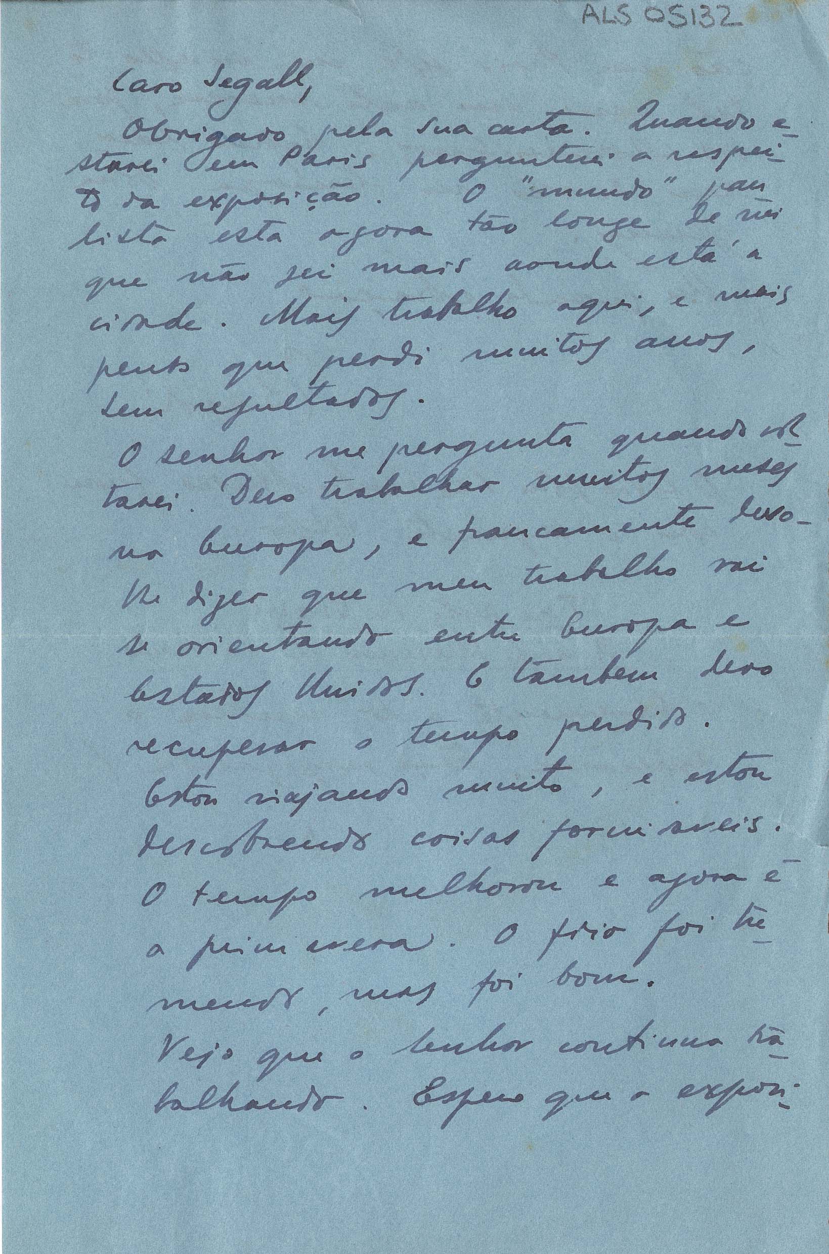 ALS Pasta: (Correspondência para Segall - anos 50 - gaveta 1) [letra Vera dHorta]