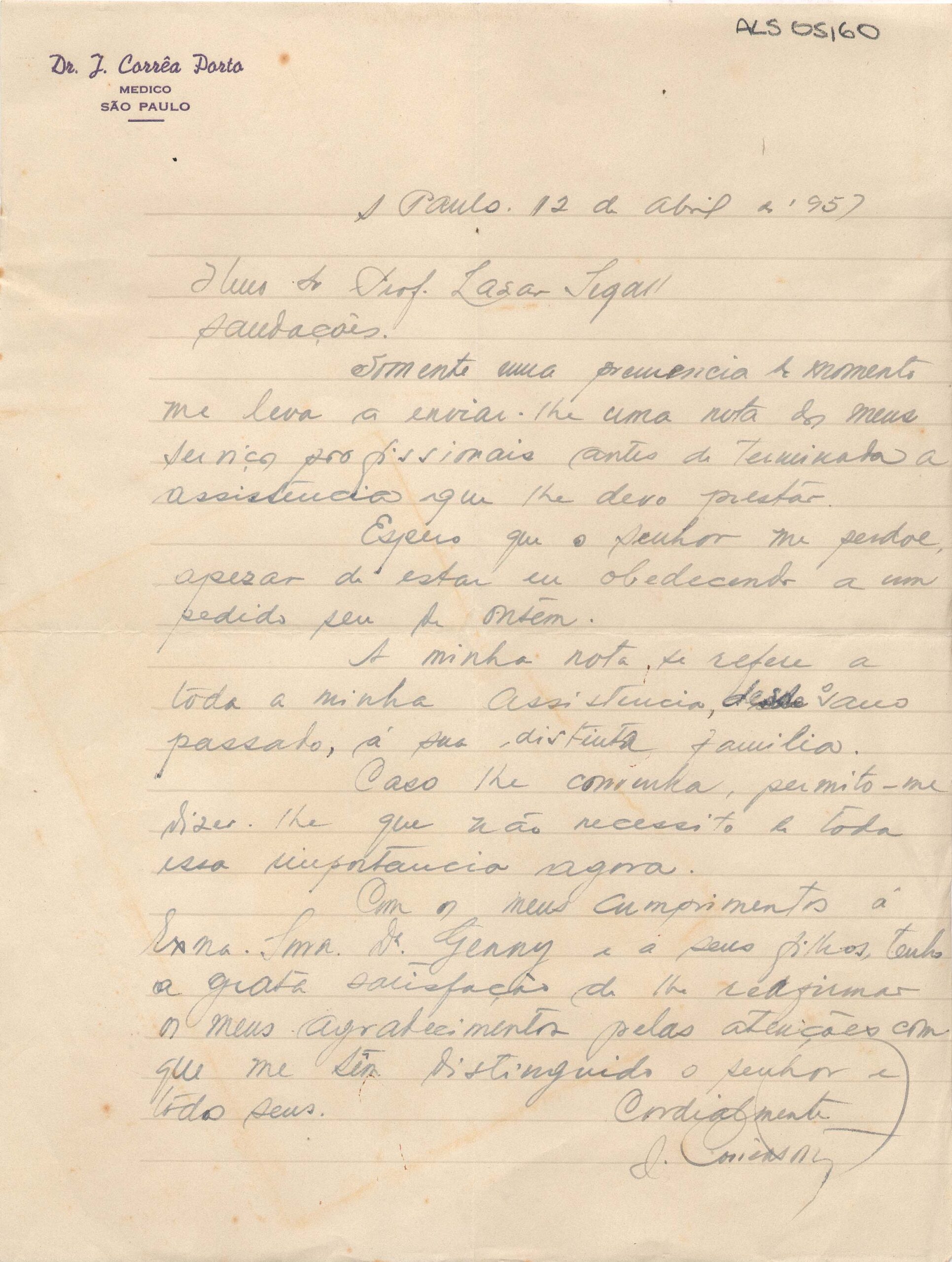 Papel timbrado: "Dr. J. Corrêa Porto Medico São Paulo"; papel pautado