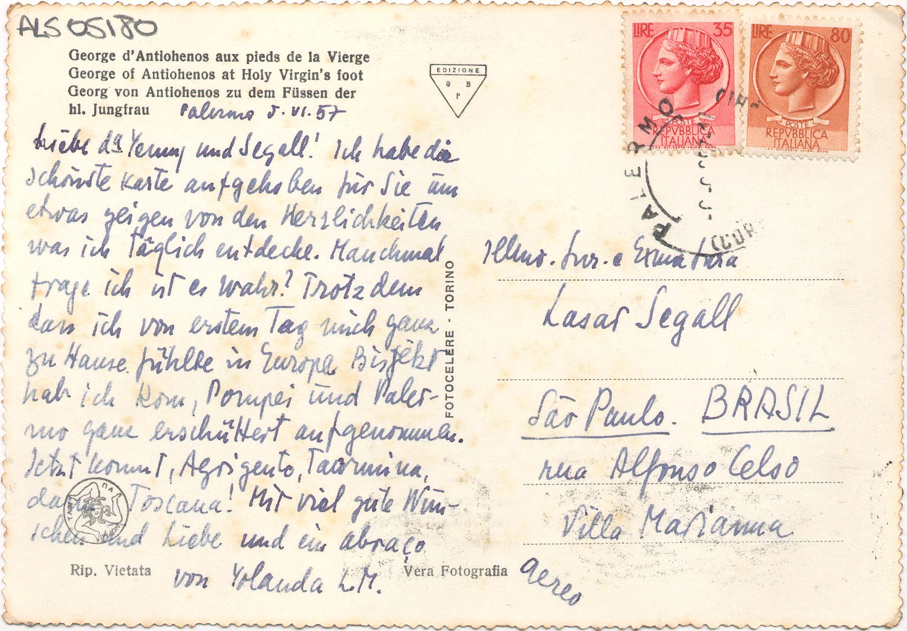 ALS Pasta: "Correspondência para Segall - anos 50 - origem gaveta 4B"