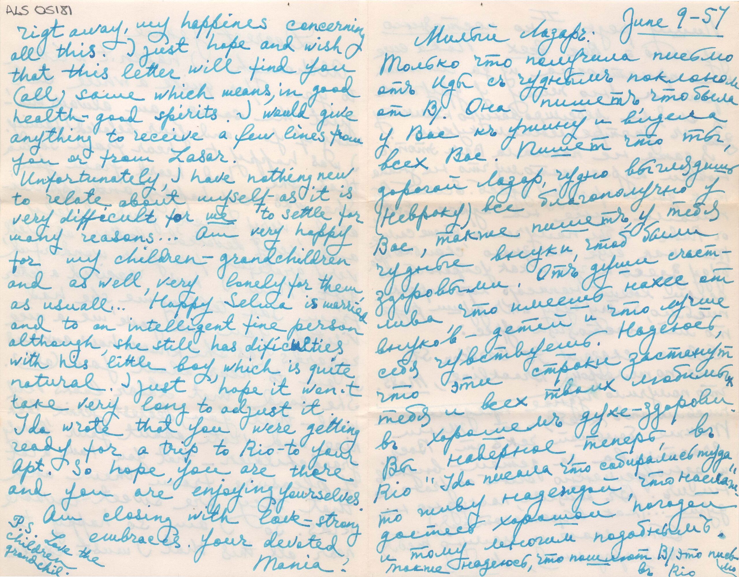 ALS Pasta: (Correspondência para Segall - anos 50 - gaveta 1) [letra Vera dHorta]