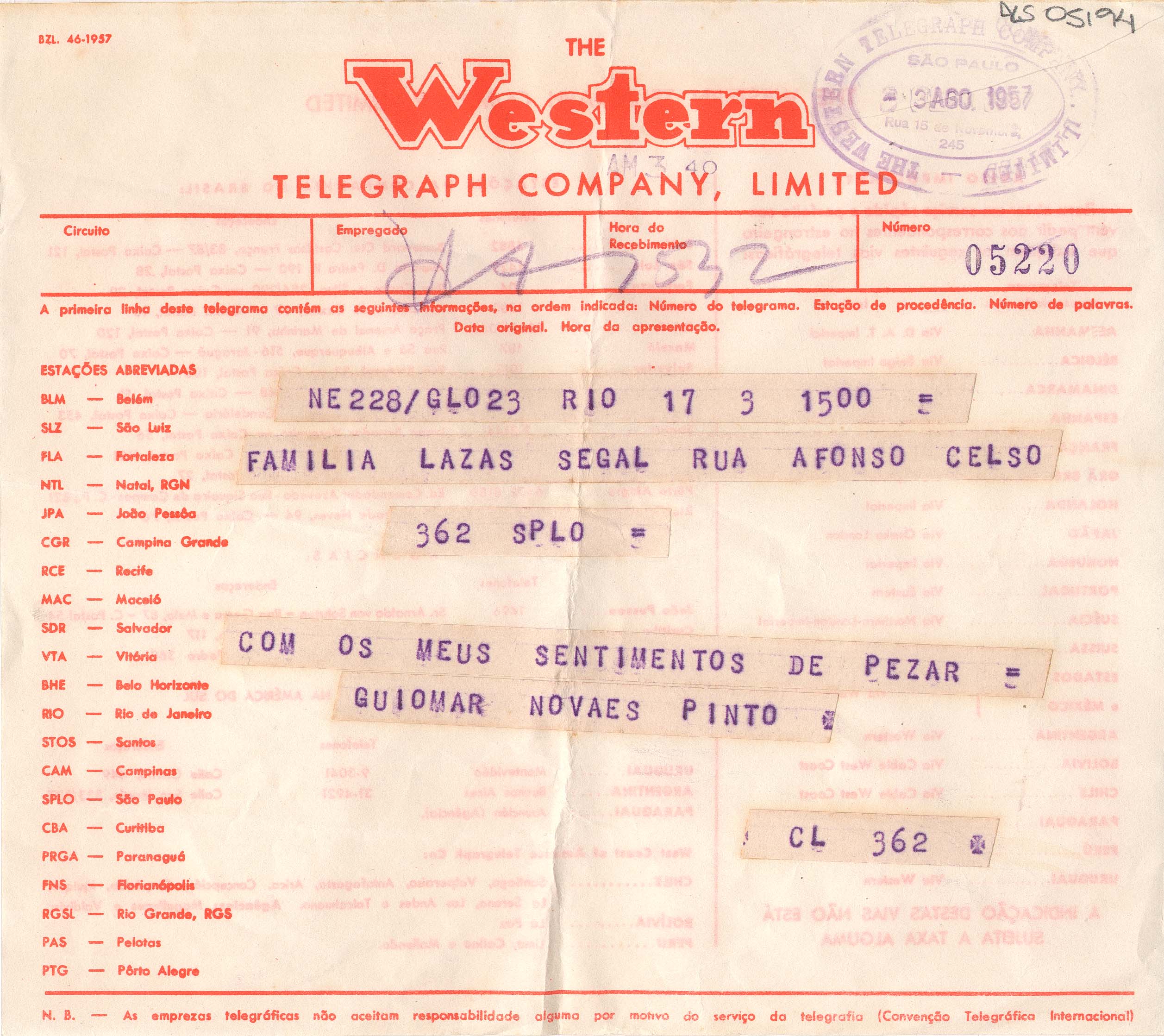 Reserva Técnica Armário Deslizante 1 Pasta Ago. 1957