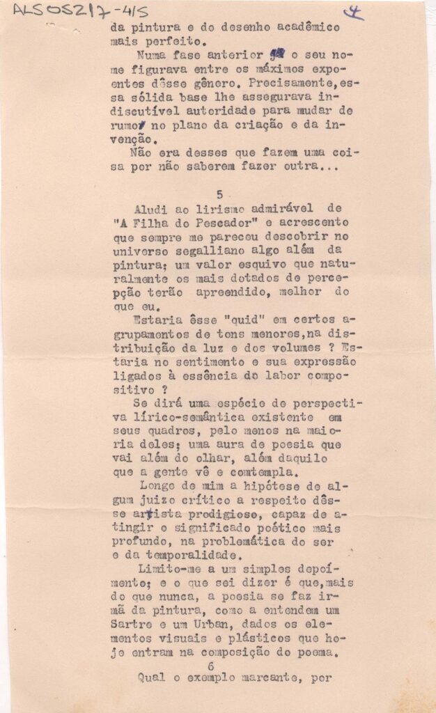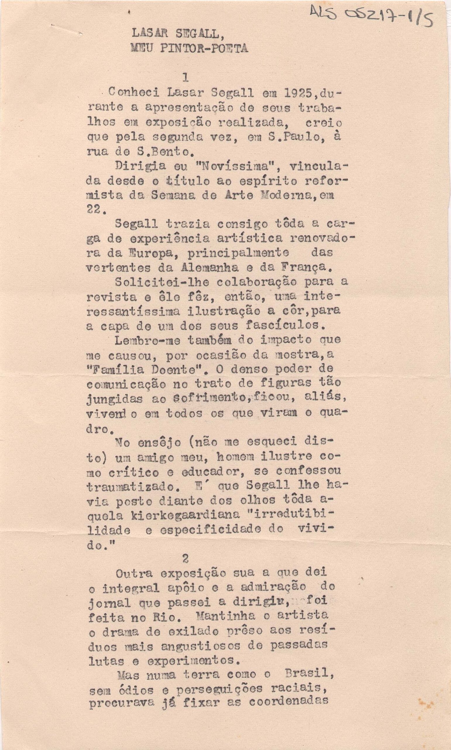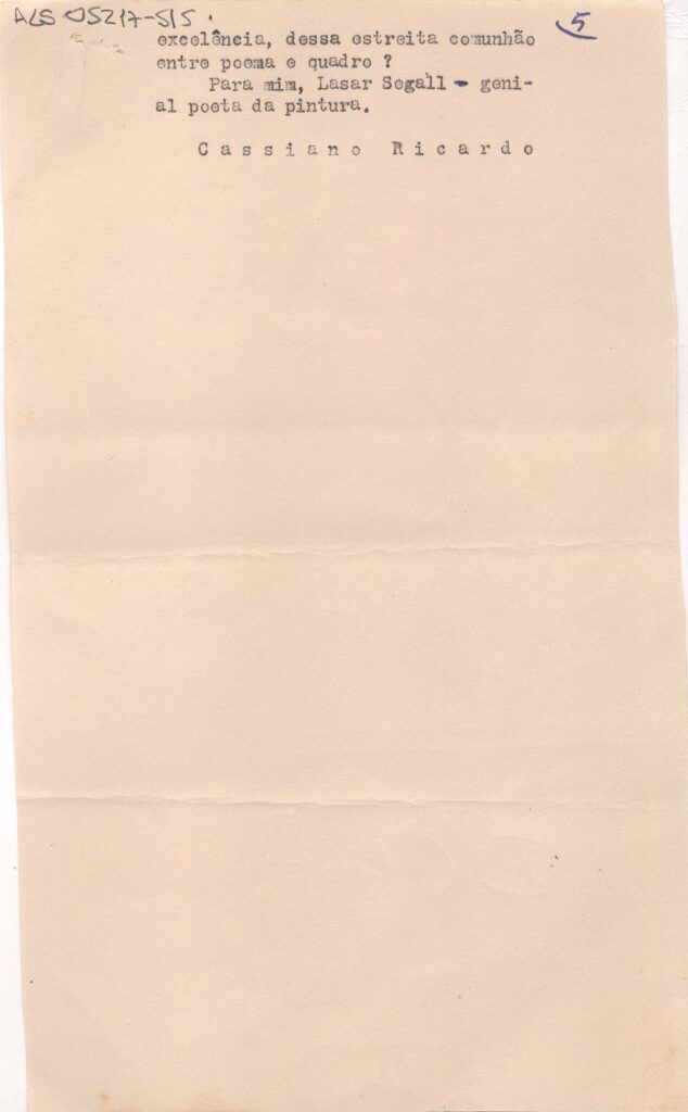 Artigo de Cassiano Ricardo para a Revista Acadêmica. "Lasar Segall, meu pintor-poeta"