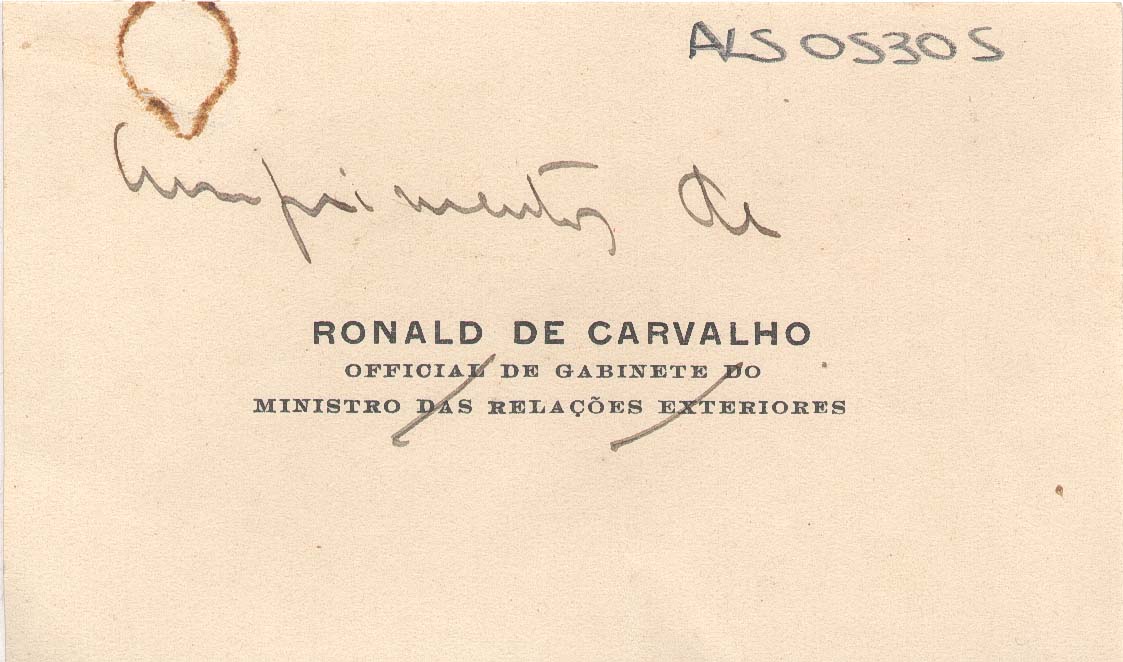 Impresso: "Official de Gabinete do Ministro das Relações Exteriores"