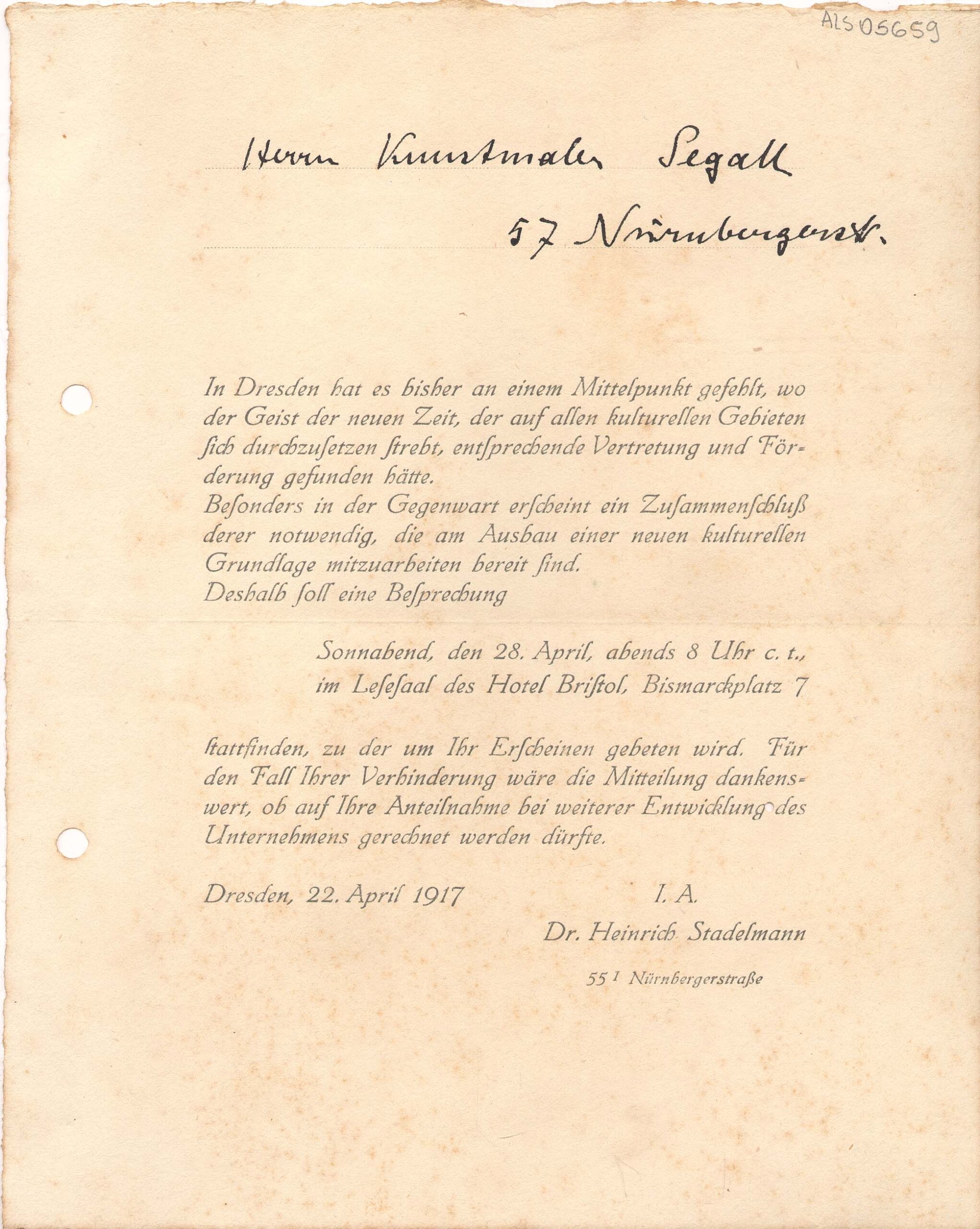 ALS Pasta: "Papiere Bettrefend meine Kunstlerische Tätigkeit"