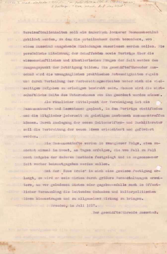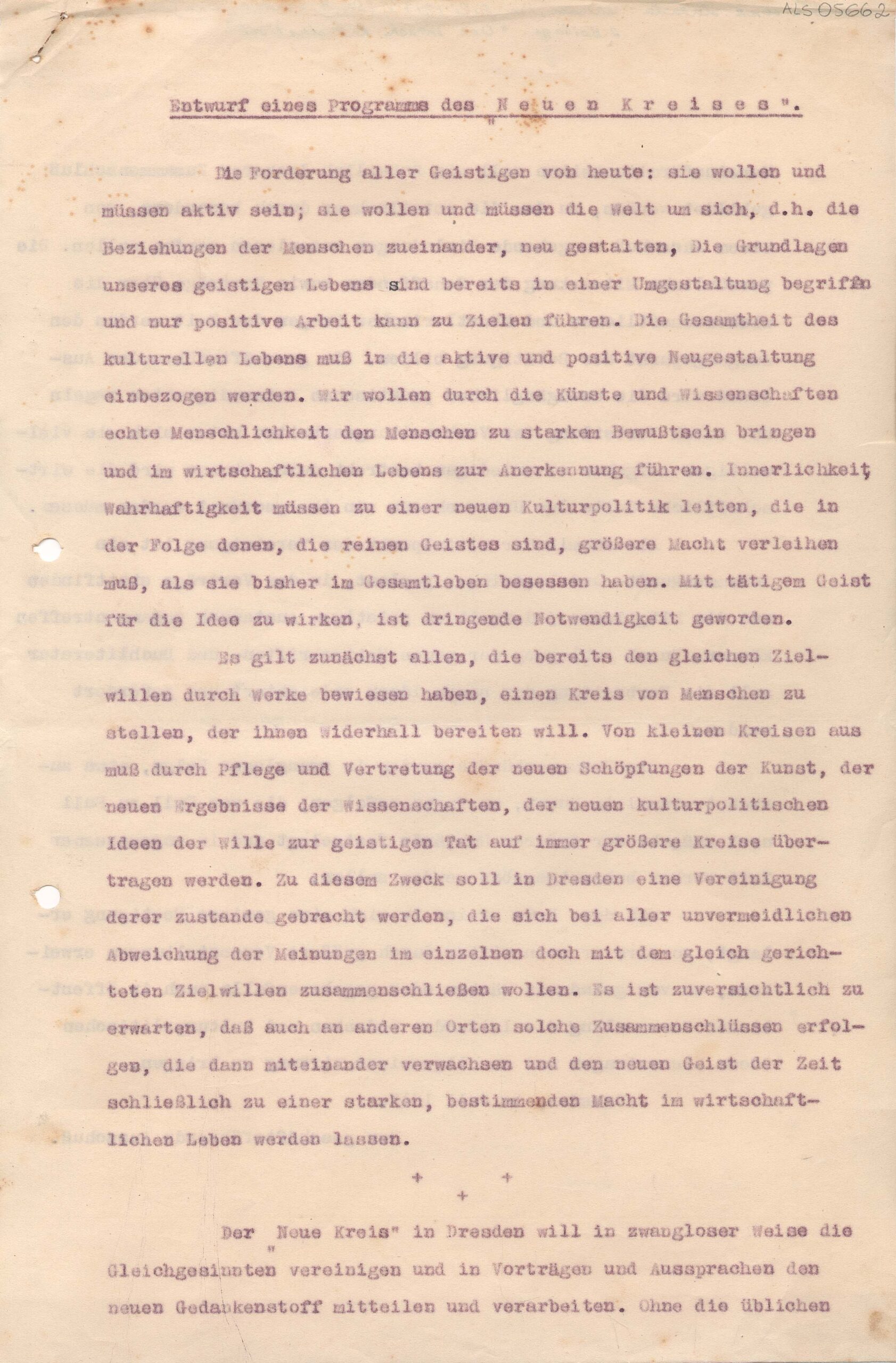 Entwurf eines programms des neuen kreises / Cópia xerox: Reserva Técnica, Armário de aço, Gaveta 1, Pasta 1911-1920 / Item Relacionado: Anexo ao ALS: 00172; ALS 05663