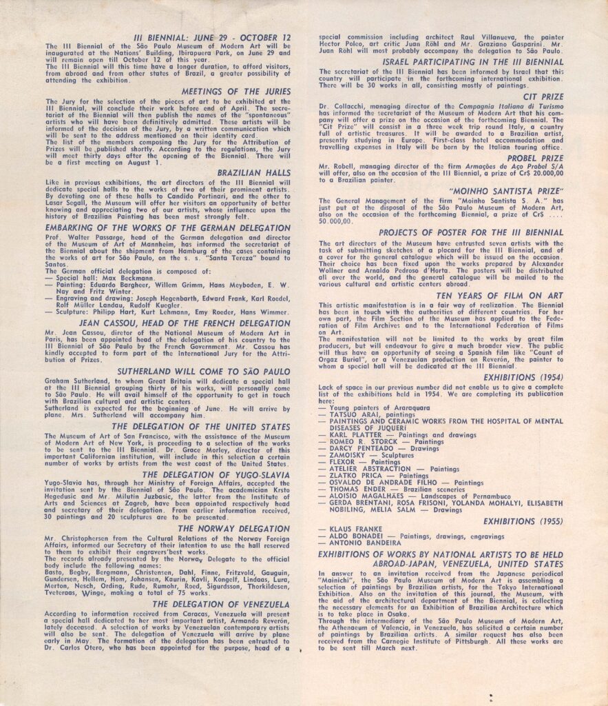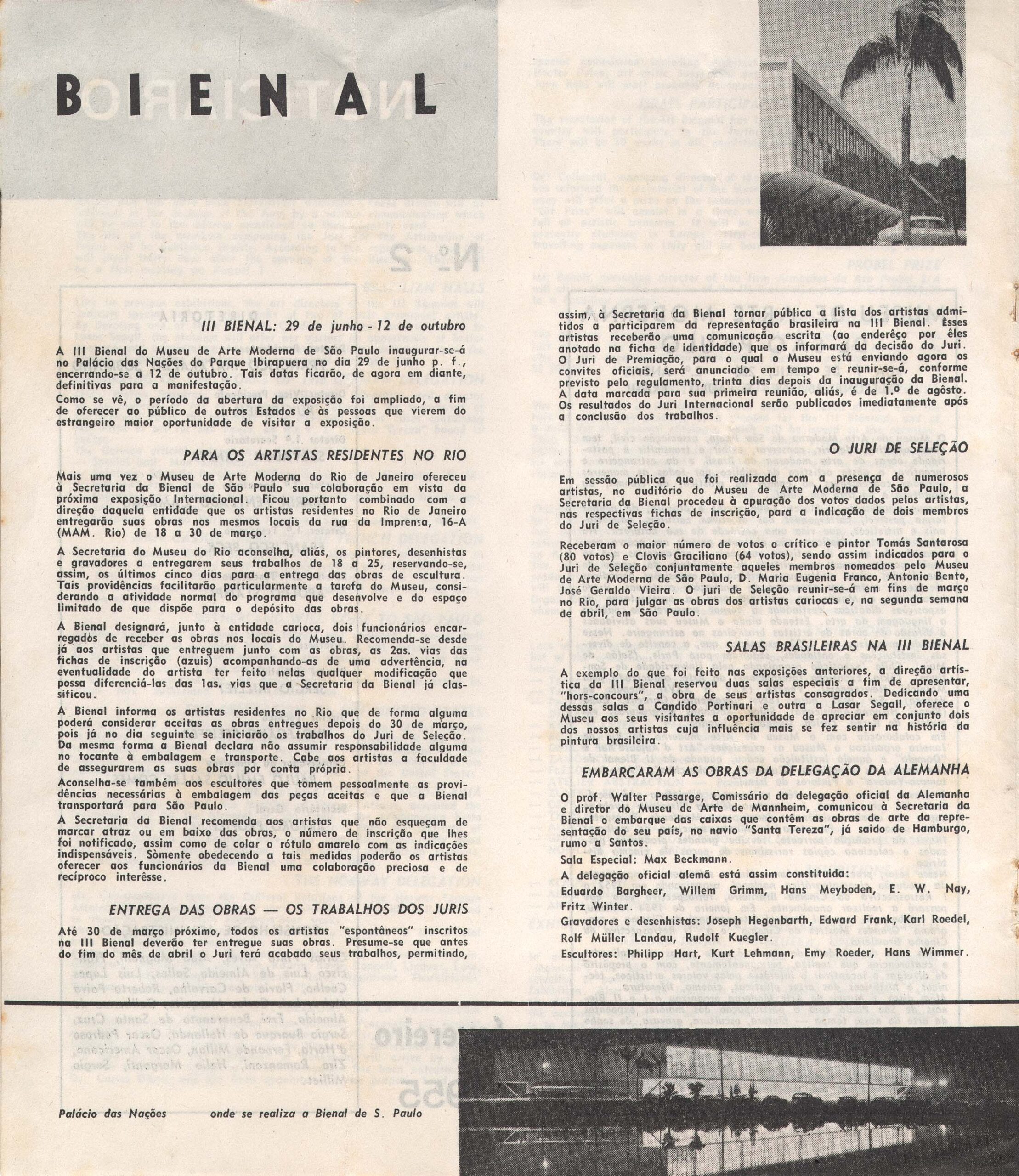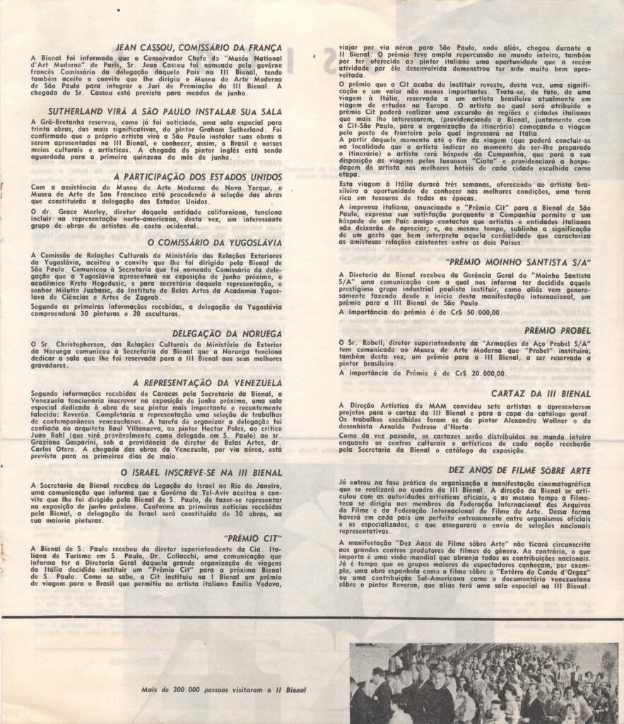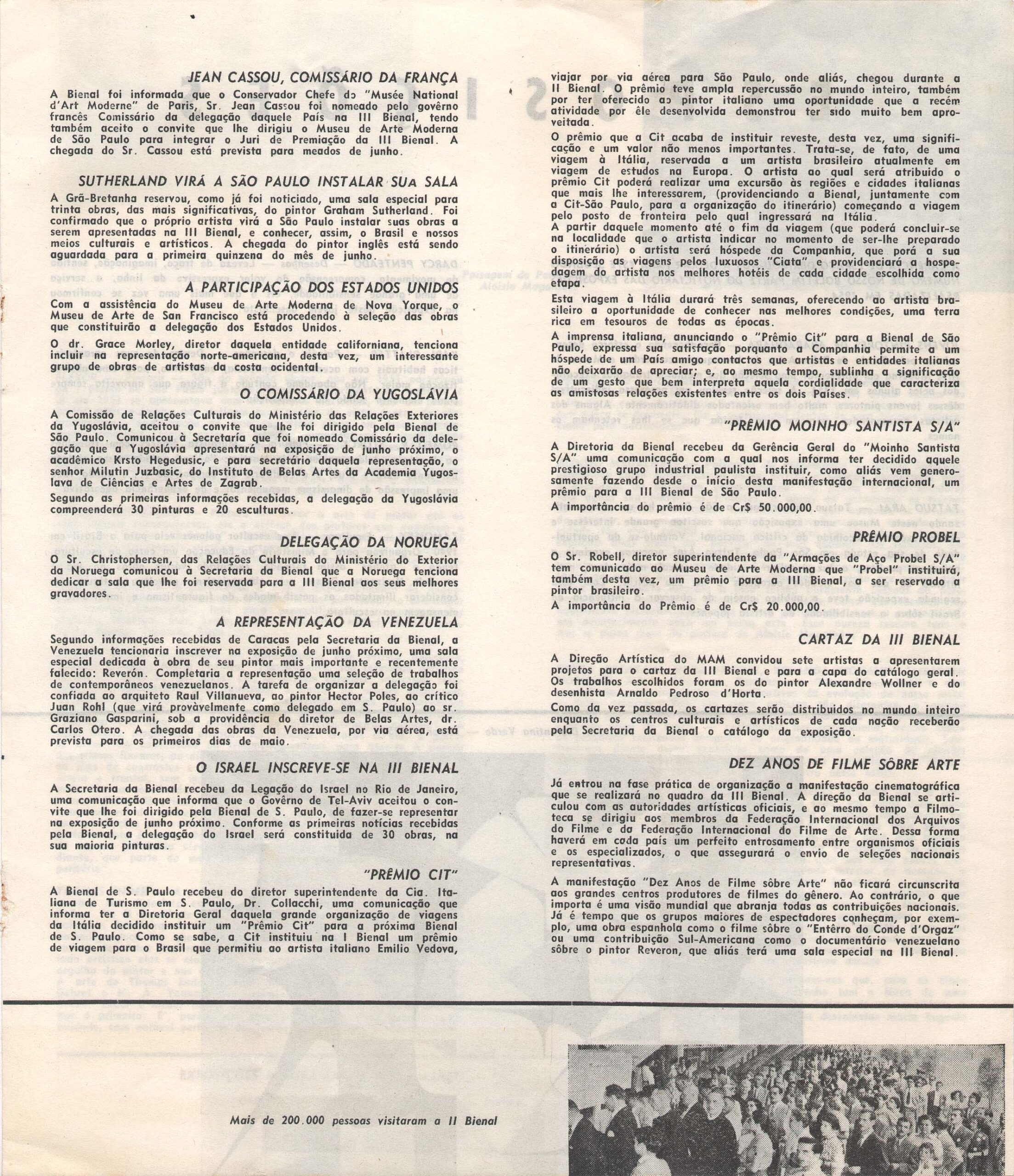 Publicação com notícias da III Bienal do Museu de Arte Moderna de São Paulo e outros eventos culturais do Museu de Arte Moderna de São Paulo