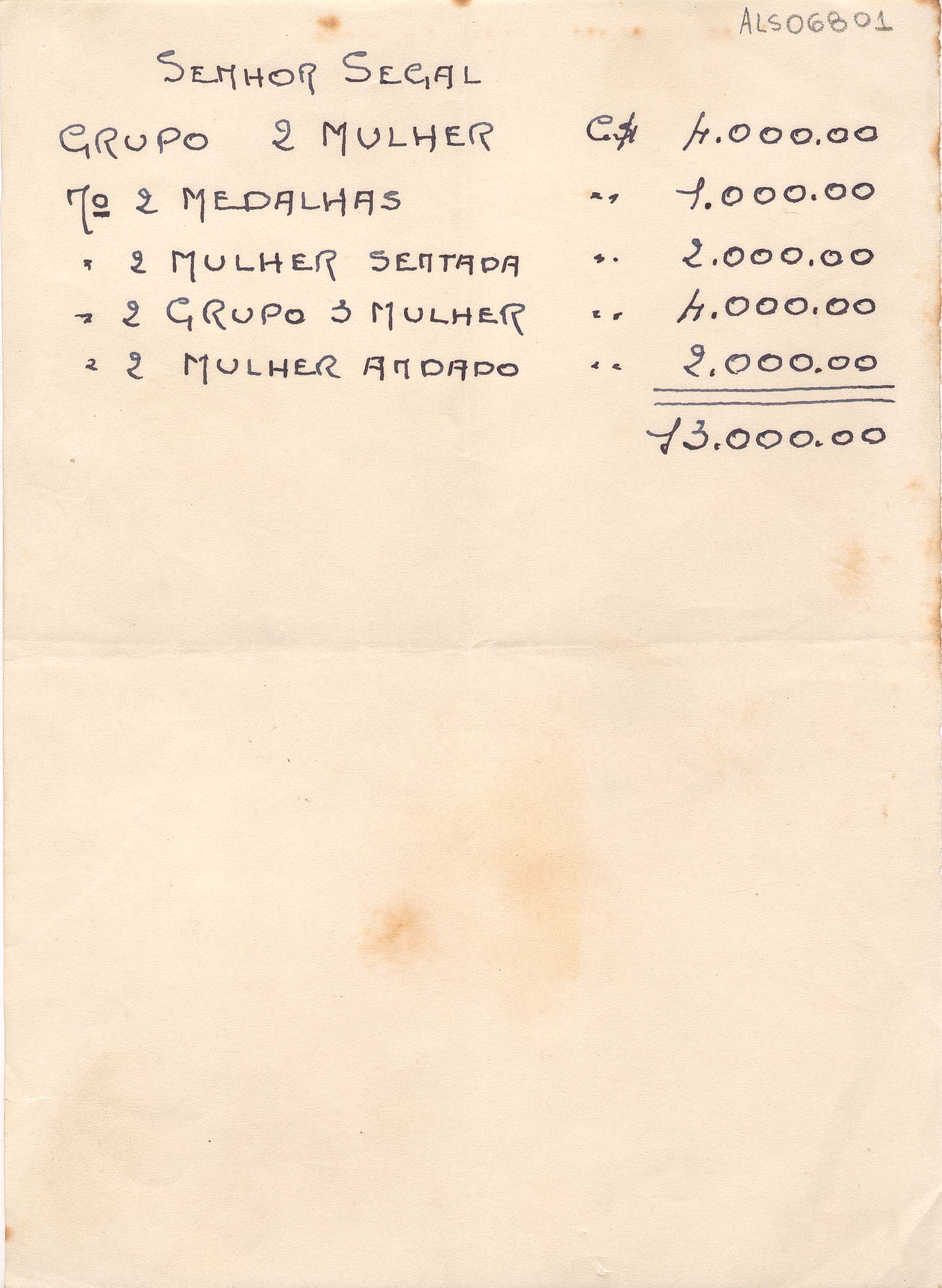 ALS Pasta: Sem título. Bilhete aposto: Assuntos Diversos 1950-1957 [Letra FF]. Subdivisão 5: "Contas Liquidadas "