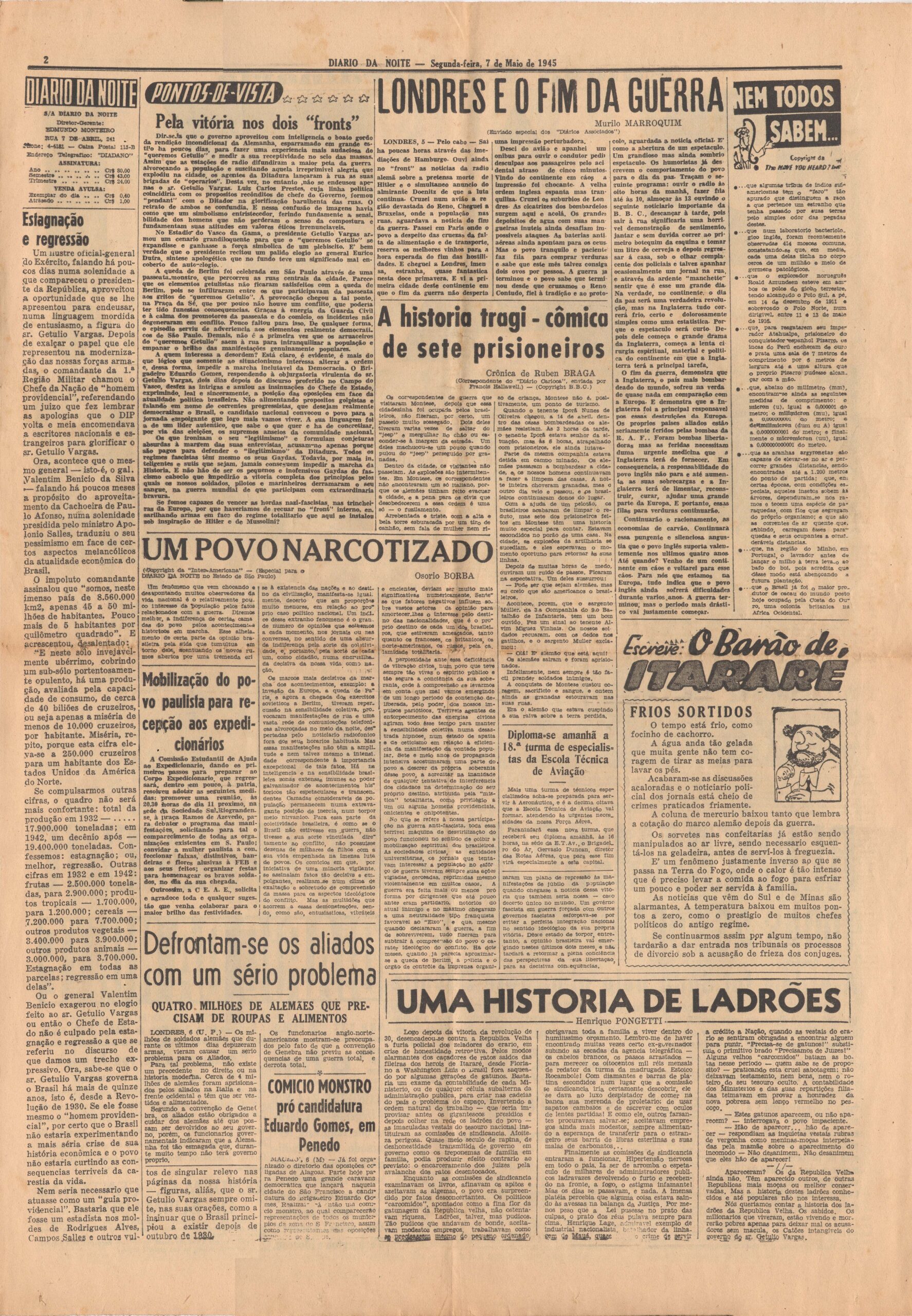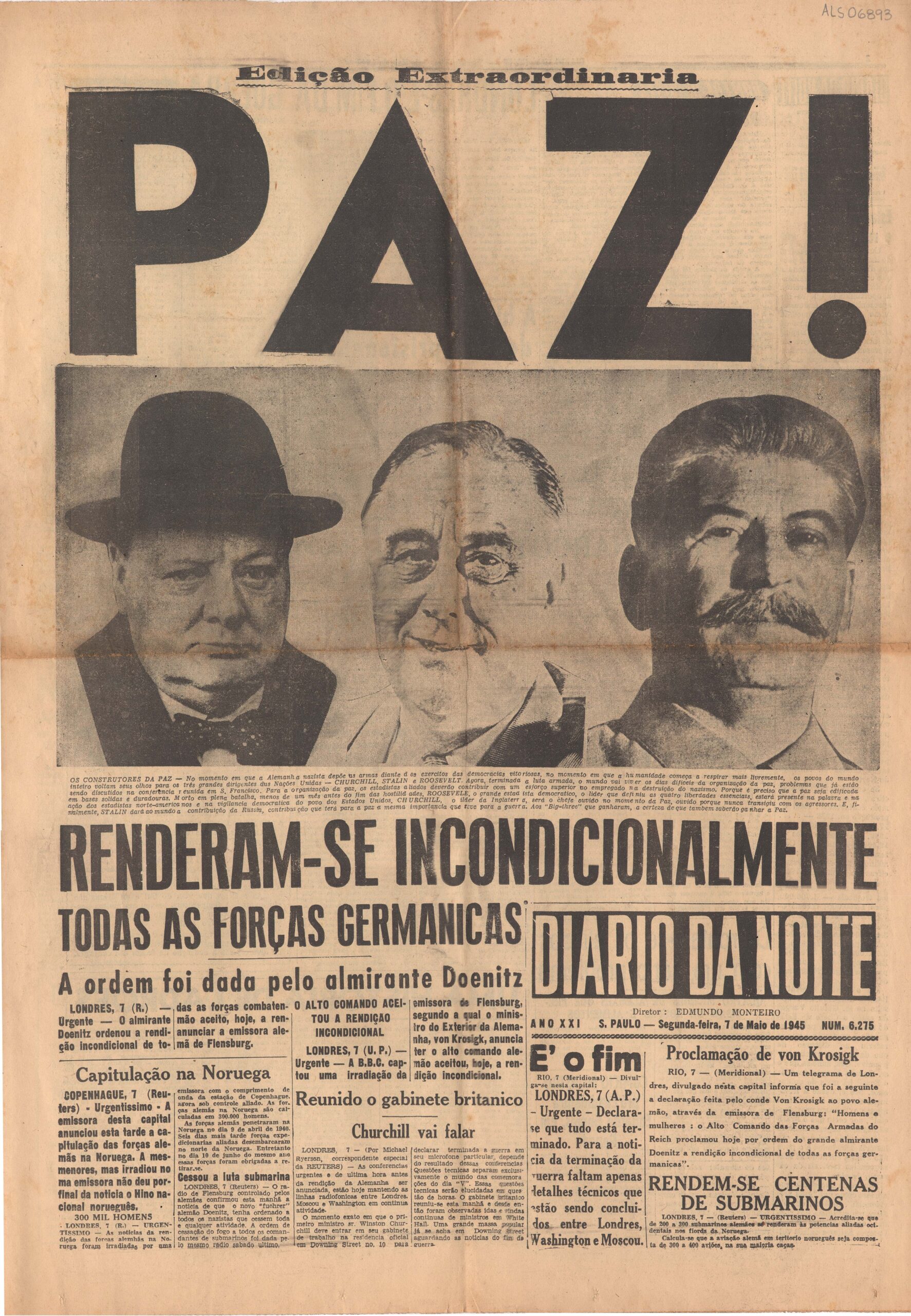 Edição extraordinária dedicada às notícias do fim da Segunda Guerra Mundial com a rendição incondicional da Alemanha