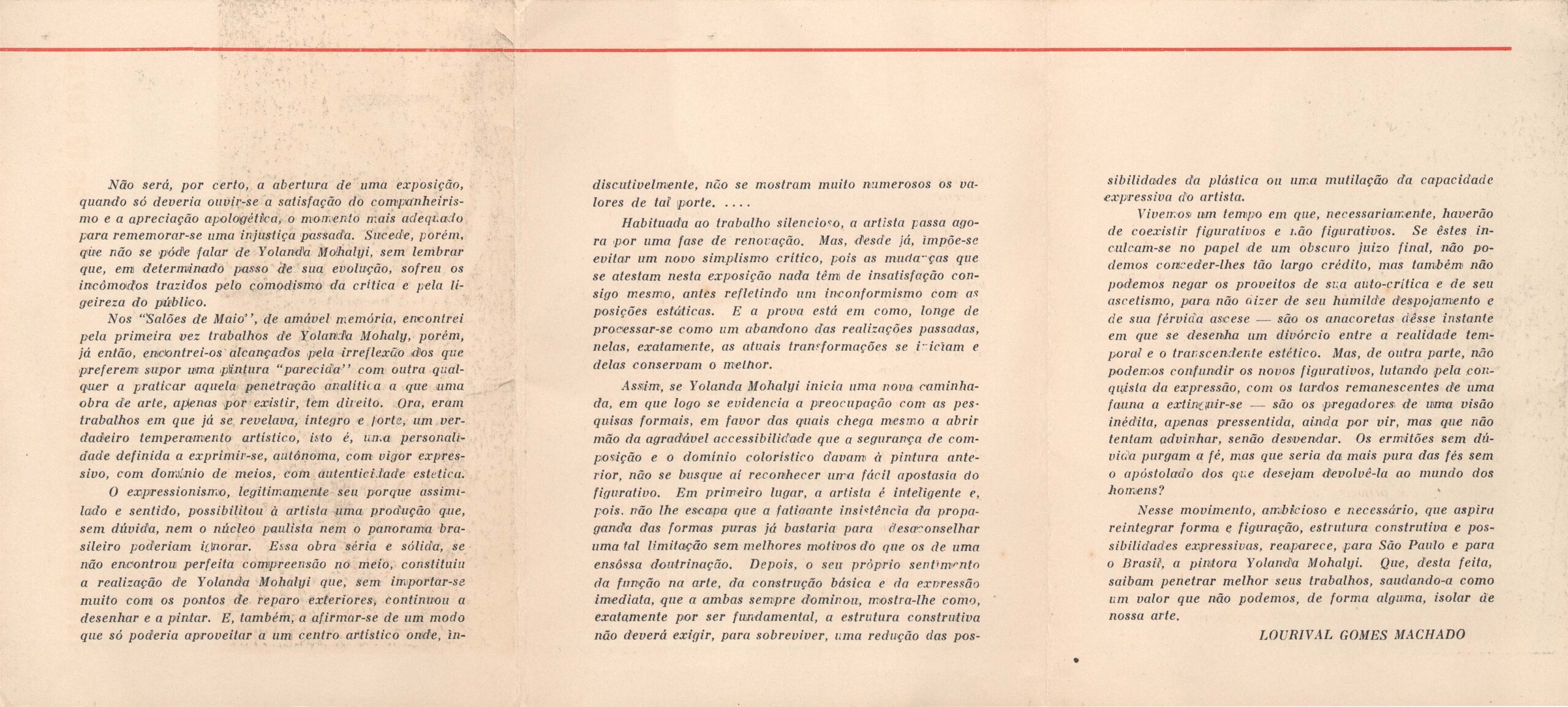 Texto de Lourival Gomes Machado sobre a Iolanda Mohalyi