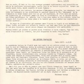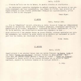 ALS Pasta: Textos - Recortes - de 1920 a 1960 (Releases) (Cópias de textos críticos; provavelmente para imprensa) (biografia; lista de publicações; etc) [letra Vera dHorta]. Pasta interna: Traductions en anglais de la Presse Holandaise. H. Th. de Vries [letra não identificada]