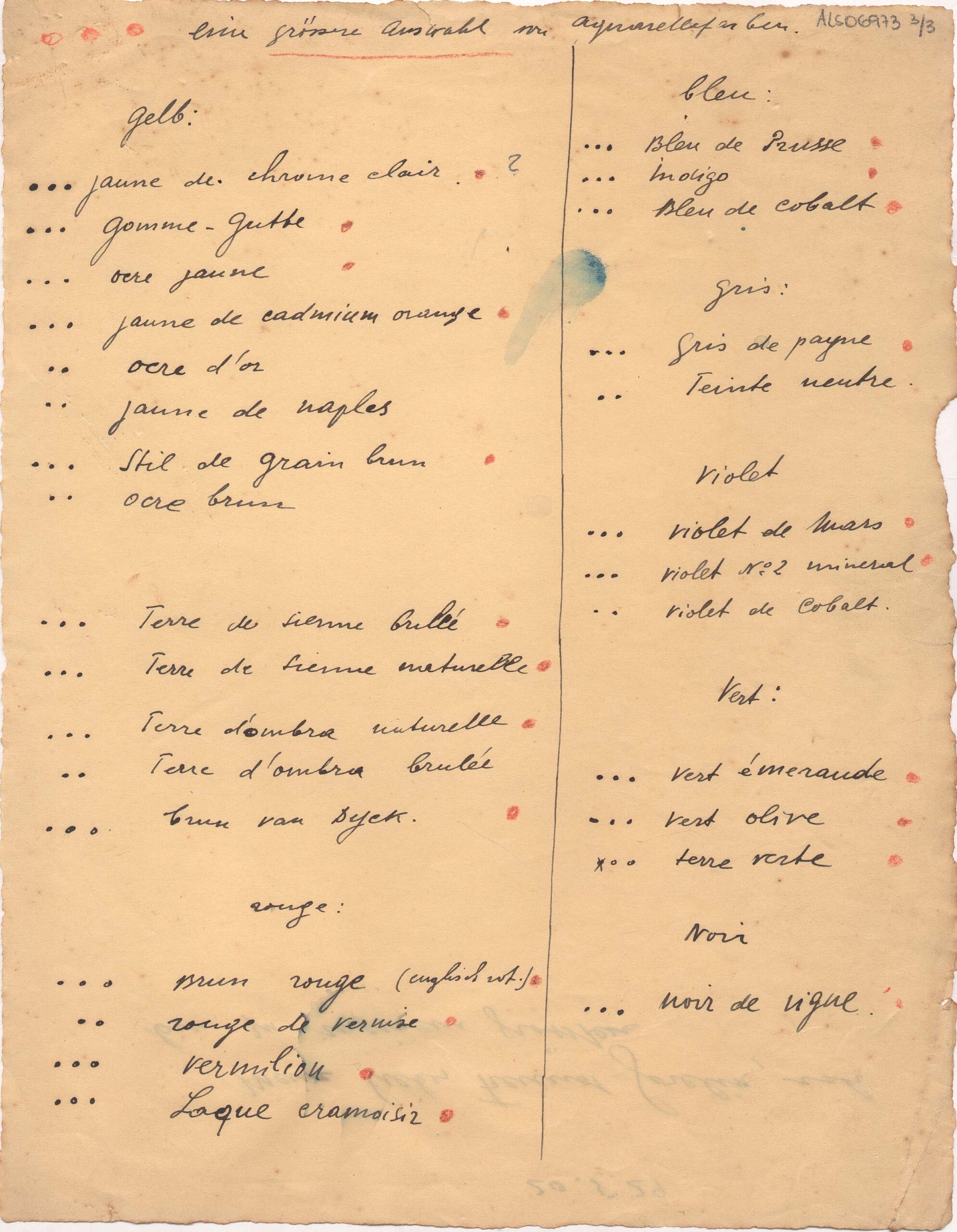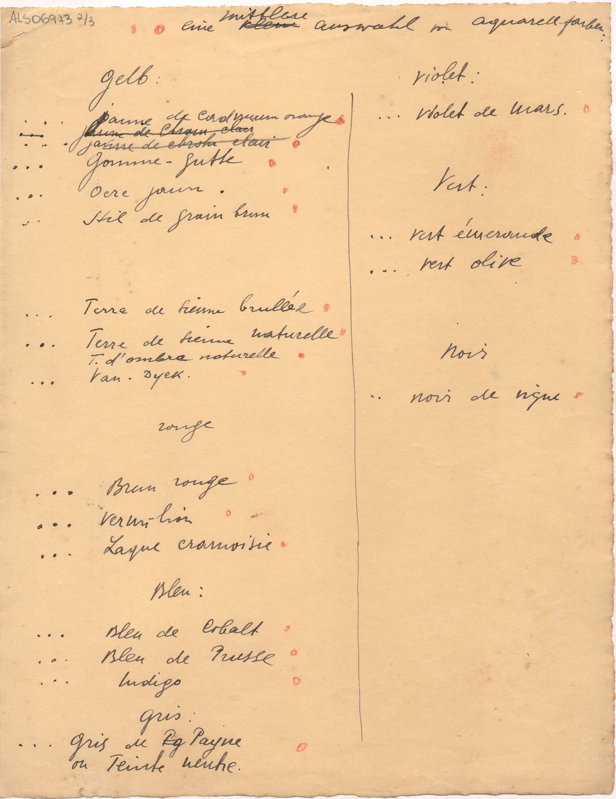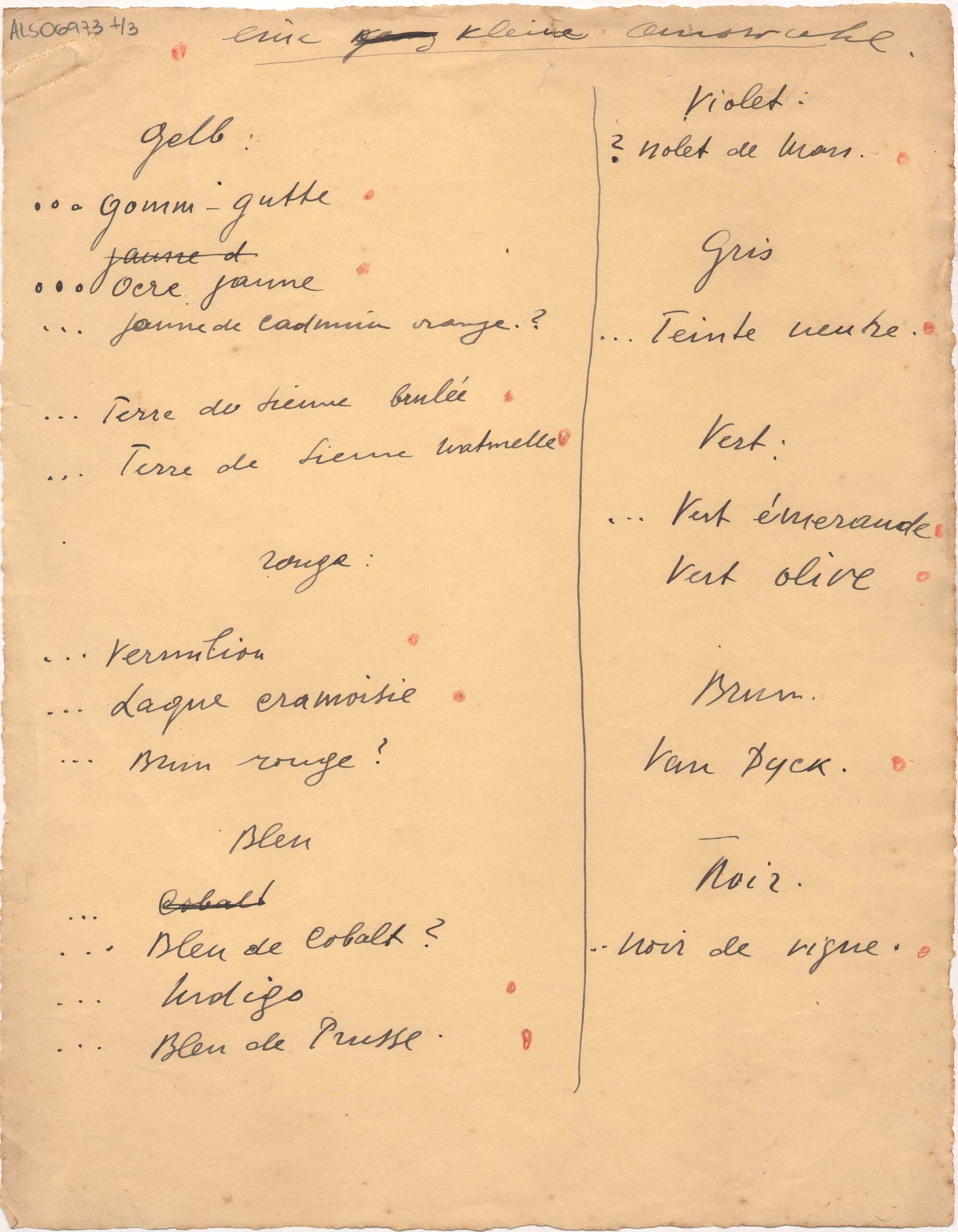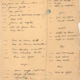 Nomes de tintas. Uma pequena seleção de cores listadas.