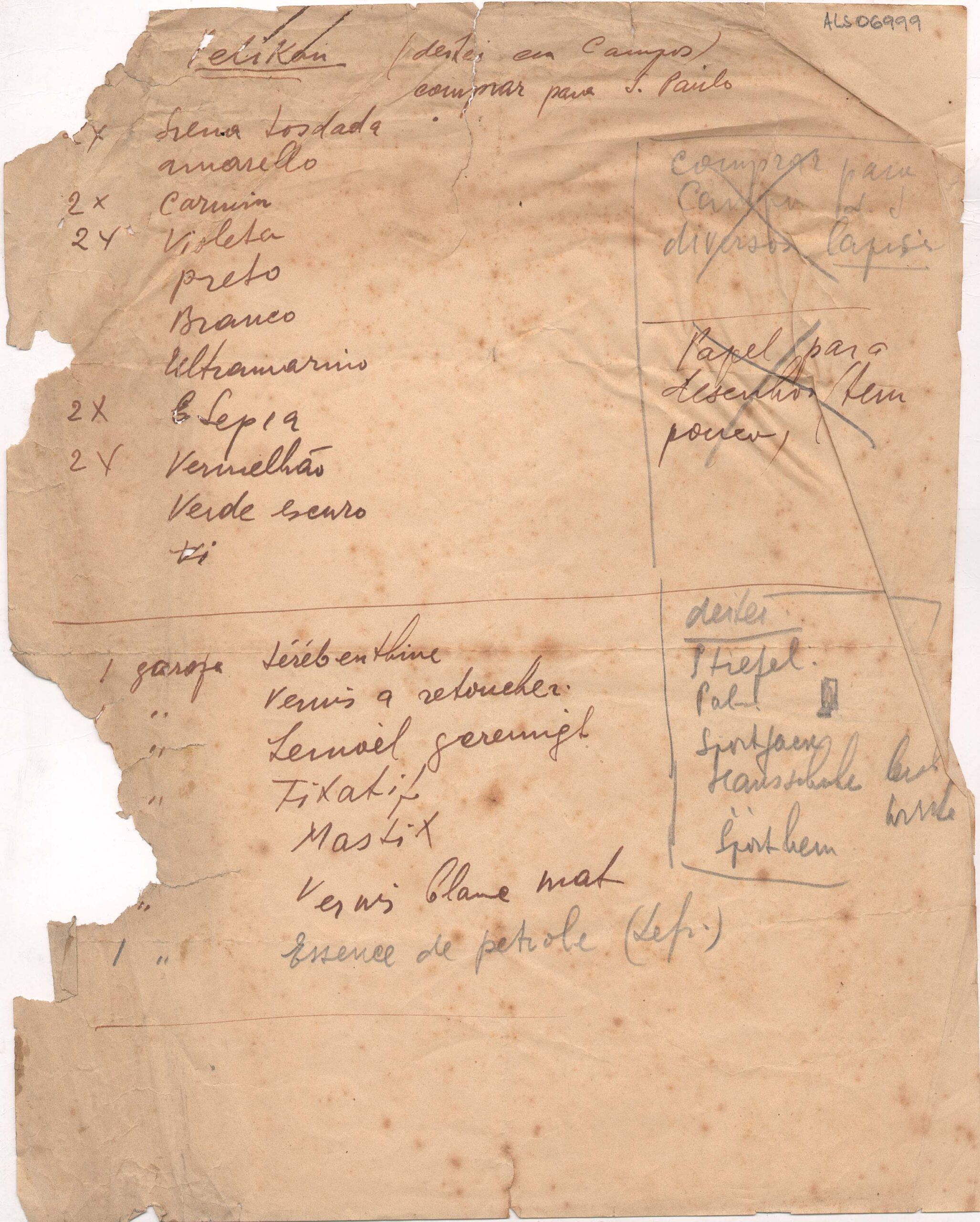 Pelikan / anotações manuscritas a grafite