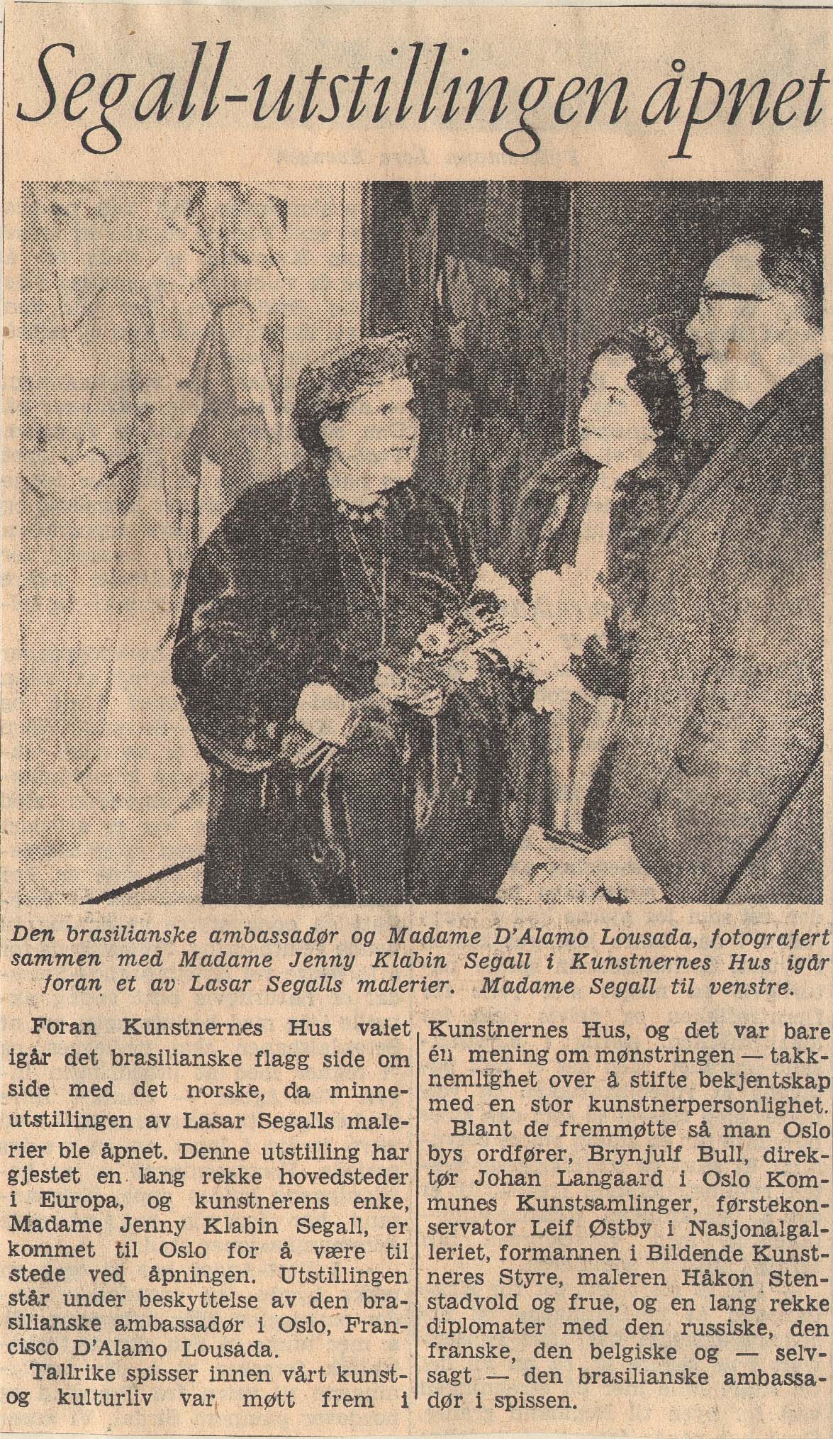 Artigo sobre a inauguração da exposição retrospectiva póstuma de Lasar Segall no Kunstnernes Hus, Oslo