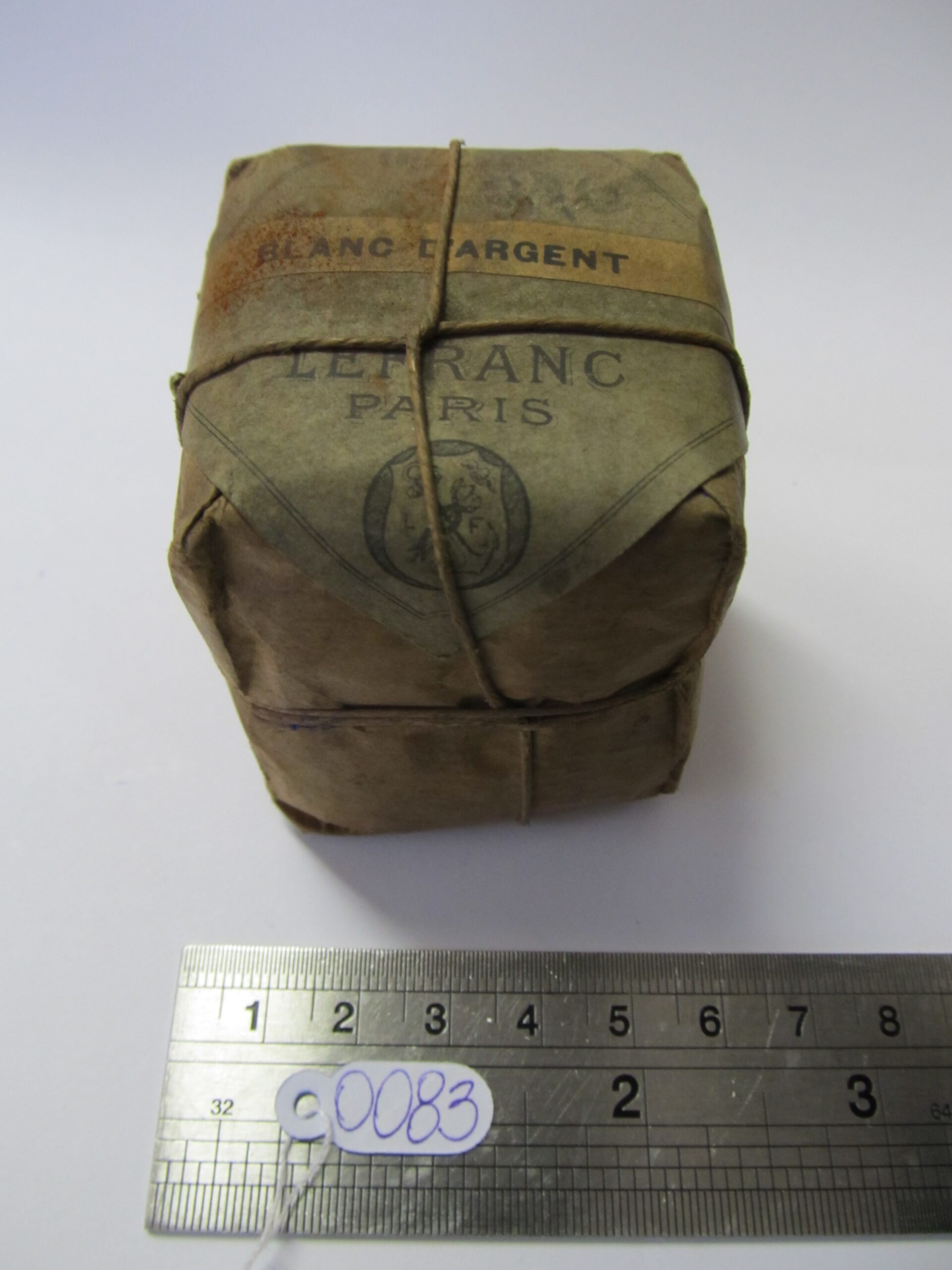 IT0083administrator12 de maio de 2025 Home Acervo Documental IT0083 20161122175905361_0_ITEM_OR-1_20802_1 Baixar DescriçãoPacote de papel amarrado com cordão, apresenta sujidadeMídiahttps://lasar-segall-2.s3.amazonaws.com/20161122175905361_0_ITEM_OR-1_20802_1Nome do arquivoIT0083.jpgPrincipalTrueDimensões TipoAltura Valor4.5 | TipoLargura Valor5.5 | TipoProfundidade Observações geraisMATERIAIS: papel e algodão; OBSERVAÇÕES: Pacote amarrado com cordão; DATA FOTOGRAFIA: 2012-12-17Localização atualVitrine Antesala De Exposição - Ateliê Segall - PrateleiraNívelInstrumentos de trabalhoTítulo/ denominaçãoPacote de papel pardo embrulhado com pigmentoData atribuída?falseInscrições inscriçãoetiqueta que contém seguinte escrição :"Le Franc-Paris". "Blanc Dargent" Histórico Tipo de históricoNúmero anterior Descrição do histórico324 Item anteriorIT0082 Próximo itemIT0084
