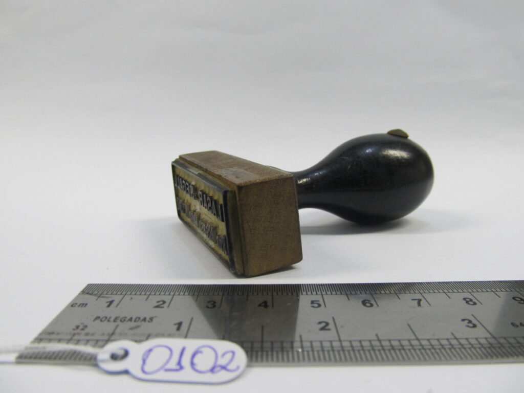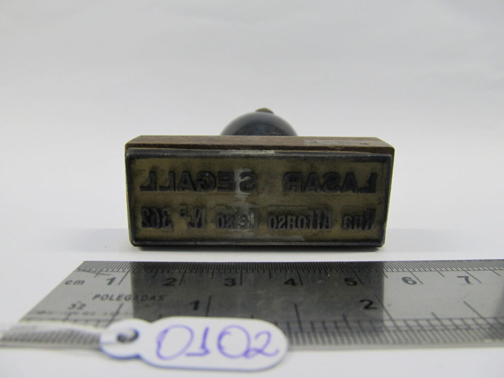 IT0102administrator12 de maio de 2025 Home Acervo Documental IT0102 20161123164843937_0_ITEM_OR-1_20838_1 Baixar 20161123164843937_1_ITEM_OR-1_20838_2 Baixar 20161123164843937_2_ITEM_OR-1_20838_3 Baixar 20161123164843937_3_ITEM_OR-1_20838_4 Baixar 20161123164843937_0_ITEM_OR-1_20838_1 20161123164843937_1_ITEM_OR-1_20838_2 20161123164843937_2_ITEM_OR-1_20838_3 20161123164843937_3_ITEM_OR-1_20838_4 DescriçãoCarimbo com cabo e base de madeira.Base do carimbo de borrachaMídiahttps://lasar-segall-2.s3.amazonaws.com/20161123164843937_0_ITEM_OR-1_20838_1 | https://lasar-segall-2.s3.amazonaws.com/20161123164843937_1_ITEM_OR-1_20838_2 | https://lasar-segall-2.s3.amazonaws.com/20161123164843937_2_ITEM_OR-1_20838_3 | https://lasar-segall-2.s3.amazonaws.com/20161123164843937_3_ITEM_OR-1_20838_4Nome do arquivoIT0102-1.jpg | IT0102-2.jpg | IT0102-4.jpg | IT0102-3.jpgPrincipalTrue||False||False||FalseDimensões TipoAltura Valor7.5 | TipoLargura Valor5.5 | TipoProfundidade Valor2.2 Observações geraisMATERIAIS: madeira; DATA FOTOGRAFIA: 2012-12-27Localização atualVitrine Antesala De Exposição - Ateliê Segall - PrateleiraNívelInstrumentos de trabalhoTítulo/ denominaçãoCarimboData atribuída?falseInscrições inscriçãoLASAR SEGALL ; " Rua Afonso Celso - 362" Histórico Tipo de históricoNúmero anterior Descrição do histórico366 Item anteriorIT0101 Próximo itemIT0103