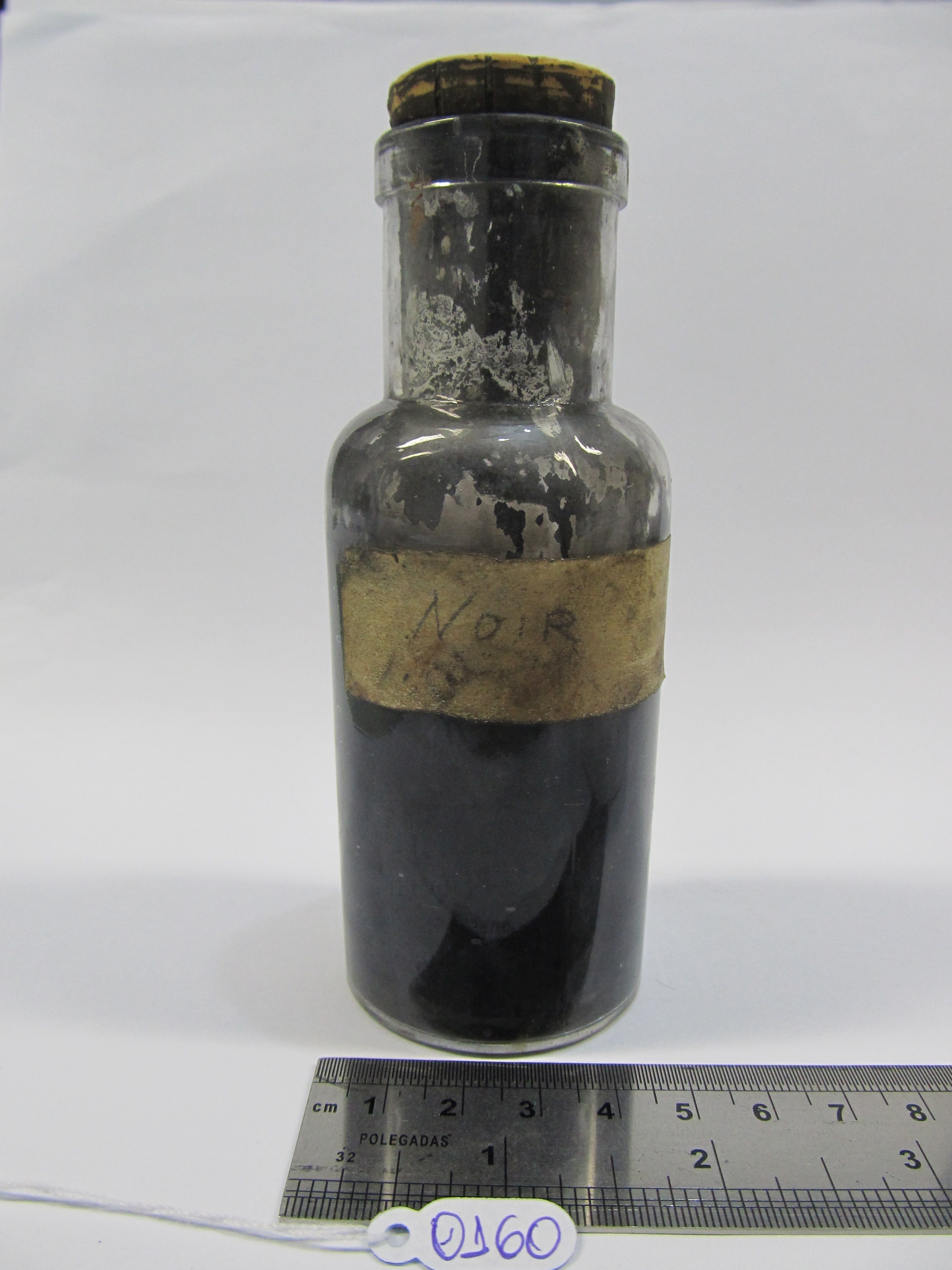 IT0160administrator12 de maio de 2025 Home Acervo Documental IT0160 2016112917572876_0_ITEM_OR-1_20791_1 Baixar Mídiahttps://lasar-segall-2.s3.amazonaws.com/2016112917572876_0_ITEM_OR-1_20791_1Nome do arquivoIT0160.jpgPrincipalTrueDimensões TipoAltura Valor13 | TipoLargura Valor4.5 | TipoProfundidade Observações geraisMATERIAIS: Vidro e cortiça; OBSERVAÇÕES: Tampa de rolha; DATA FOTOGRAFIA: 2012-12-17Localização atualVitrine Antesala De Exposição - Ateliê Segall - PrateleiraNívelInstrumentos de trabalhoTítulo/ denominaçãoVidro de pigmento em póData atribuída?falseInscrições inscriçãoRótulo de papel manuscrito "NOIR 1.3 Histórico Tipo de históricoNúmero anterior Descrição do histórico234 Item anteriorIT0159 Próximo itemIT0161