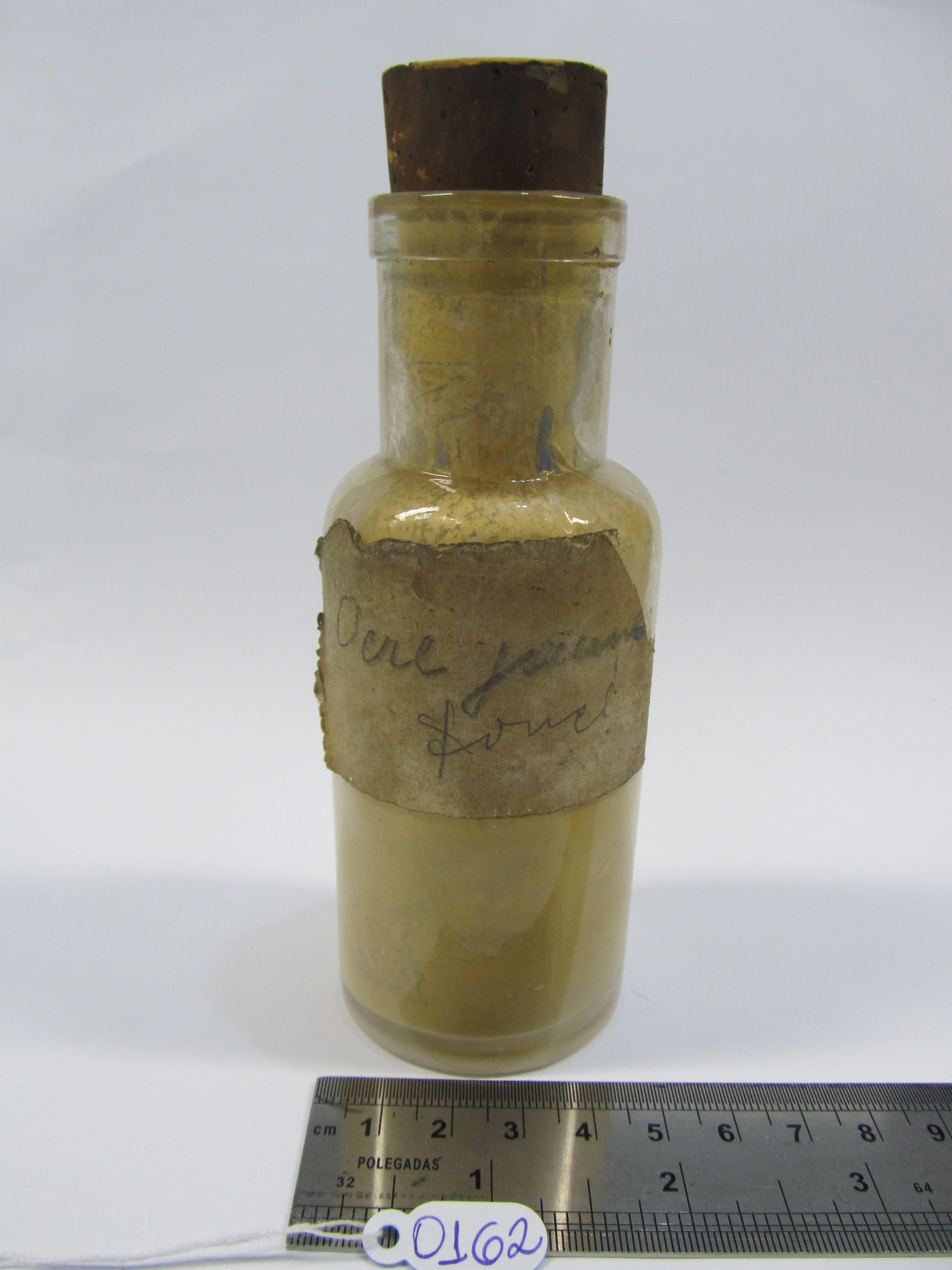 IT0162administrator12 de maio de 2025 Home Acervo Documental IT0162 20161129180108576_0_ITEM_OR-1_20793_1 Baixar Mídiahttps://lasar-segall-2.s3.amazonaws.com/20161129180108576_0_ITEM_OR-1_20793_1Nome do arquivoIT0162.jpgPrincipalTrueDimensões TipoAltura Valor14 | TipoLargura Valor4.5 | TipoProfundidade Observações geraisMATERIAIS: Vidro e cortiça; OBSERVAÇÕES: Tampa de rolha. Etiqueta "nº 019" na base; DATA FOTOGRAFIA: 2012-12-13Localização atualVitrine Antesala De Exposição - Ateliê Segall - PrateleiraNívelInstrumentos de trabalhoTítulo/ denominaçãoVidro de pigmento em pó ocre amareladoData atribuída?falseInscrições inscriçãoRótulo de papel manuscrito "Ocre Jaienne Foncé" Histórico Tipo de históricoNúmero anterior Descrição do histórico236 Item anteriorIT0161 Próximo itemIT0163
