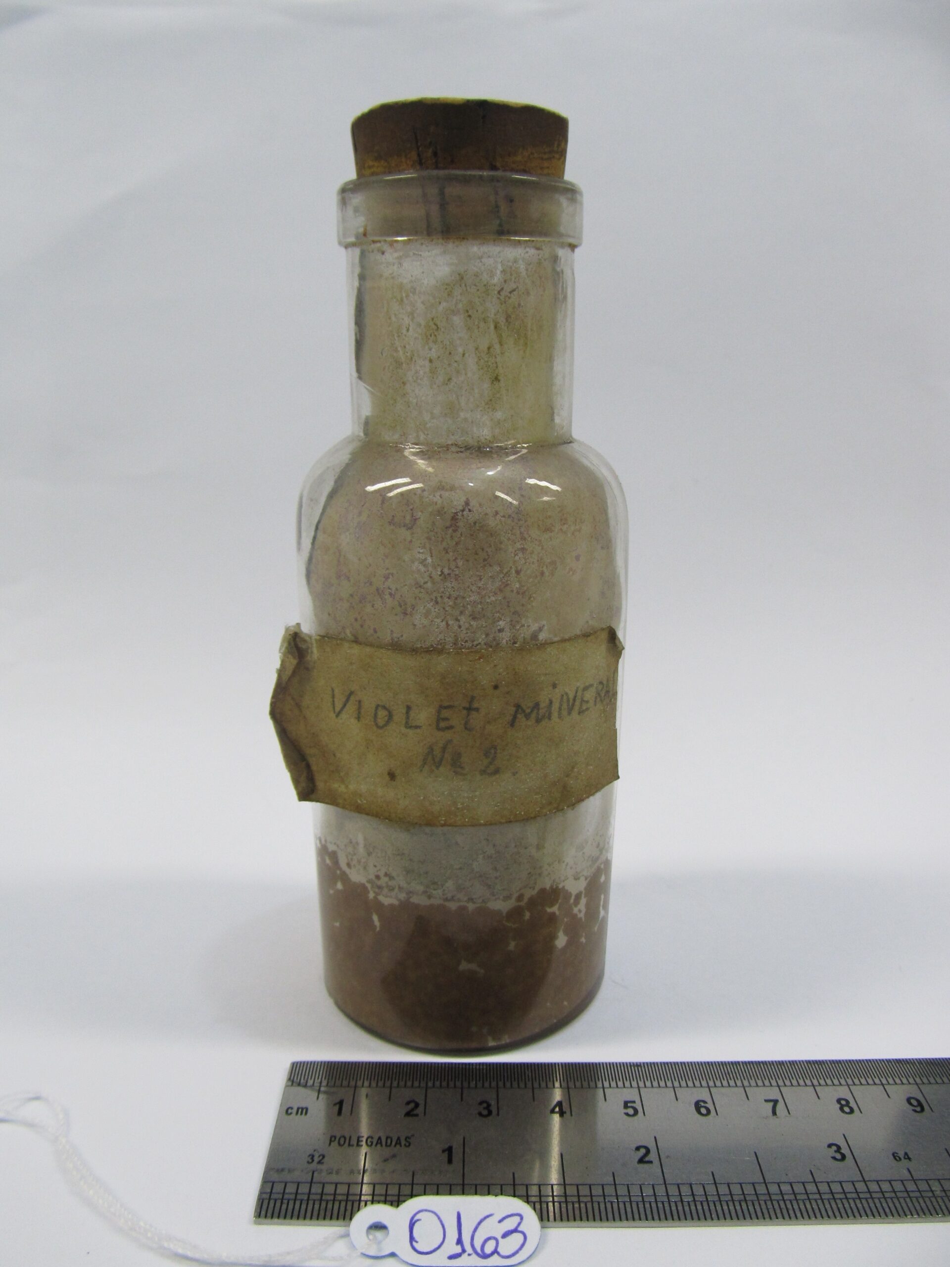 IT0163administrator12 de maio de 2025 Home Acervo Documental IT0163 20161129180150514_0_ITEM_OR-1_20794_1 Baixar Mídiahttps://lasar-segall-2.s3.amazonaws.com/20161129180150514_0_ITEM_OR-1_20794_1Nome do arquivoIT0163.jpgPrincipalTrueDimensões TipoAltura Valor13 | TipoLargura Valor4.5 | TipoProfundidade Observações geraisMATERIAIS: Vidro e cortiça; OBSERVAÇÕES: Tampa de rolha envelhecida. Pigmento endurecido com aparente humidade; DATA FOTOGRAFIA: 2012-12-17Localização atualVitrine Antesala De Exposição - Ateliê Segall - PrateleiraNívelInstrumentos de trabalhoTítulo/ denominaçãoVidro de pigmento em pó violetaData atribuída?falseInscrições inscriçãoRótulo de papel colado manuscrito "VIOLET MINERAL Nº2" Histórico Tipo de históricoNúmero anterior Descrição do histórico237 Item anteriorIT0162 Próximo itemIT0164