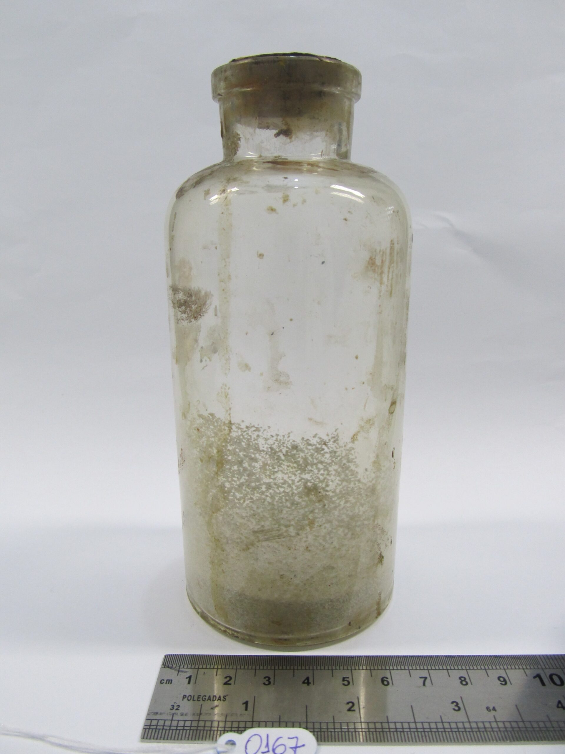 IT0167administrator12 de maio de 2025 Home Acervo Documental IT0167 20170418172458428_0_ITEM_OR-1_20798_1 Baixar Mídiahttps://lasar-segall-2.s3.amazonaws.com/20170418172458428_0_ITEM_OR-1_20798_1Nome do arquivoIT0167.jpgPrincipalTrueDimensões TipoAltura Valor15 | TipoLargura Valor6.5 | TipoProfundidade Observações geraisMATERIAIS: Vidro e cortiça; OBSERVAÇÕES: Tampa de rolha; DATA FOTOGRAFIA: 2012-12-17Localização atualVitrine Antesala De Exposição - Ateliê Segall - PrateleiraNívelInstrumentos de trabalhoTítulo/ denominaçãoVidro contendo areia begeData atribuída?falseInscrições inscriçãoSem rótulos no vidro. Inscrição na base em relevo: "325" Histórico Tipo de históricoNúmero anterior Descrição do histórico241 Item anteriorIT0166 Próximo itemIT0168