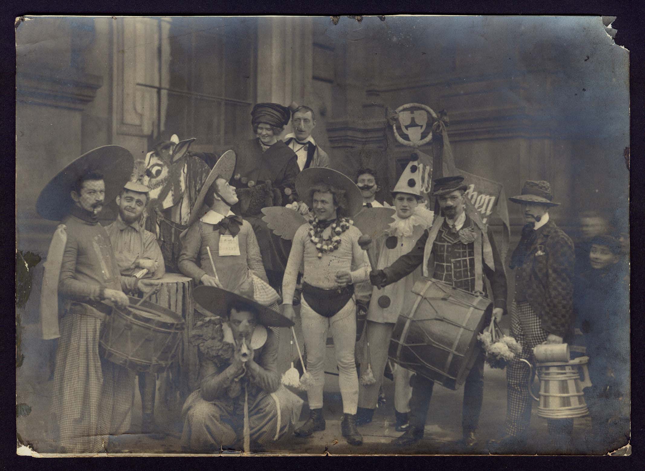 Primeiro Carnaval da cidade de Dresden instituído por alunos da Academia de Belas Artes. Segall aparece fantasiado de Pierrô; atrás do tocador de bumbo.