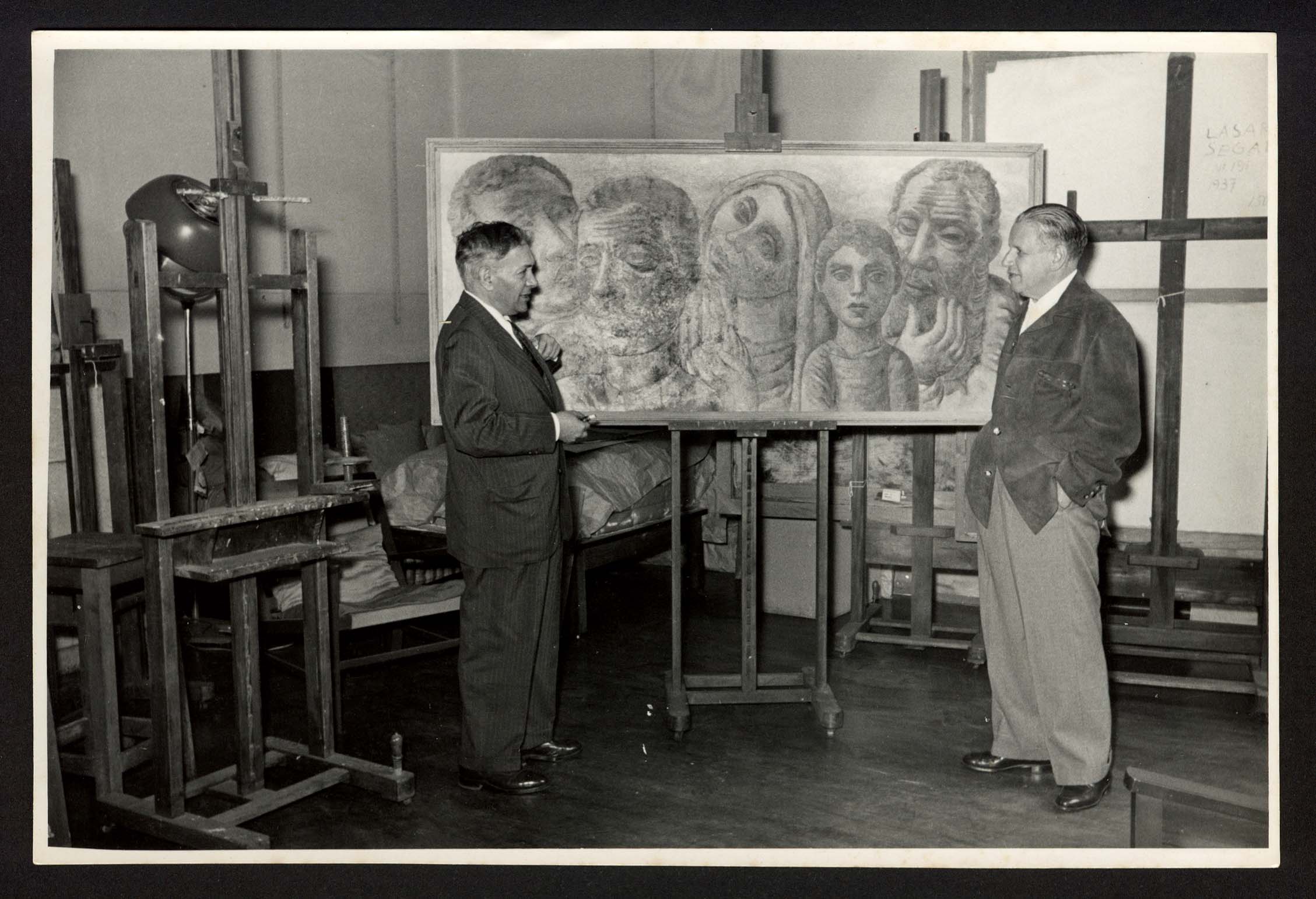 OBSERVAÇÕES RELACIONAL : outras cópias: F.00202.02 / RELACIONA-SE COM : outras cópias: F.00202.02 / ASSUNTO : Lasar Segall e sua obra | Ateliê / OBSERVAÇÕES GERAIS(v309) : a informação a respeito da personalidade fotografada ao lado de Segall foi obtida no álbum III à p.73 | na fotografia aparece a obra / OBSERVAÇÃO DATA(duvida/cerca/dedicatória) : cerca