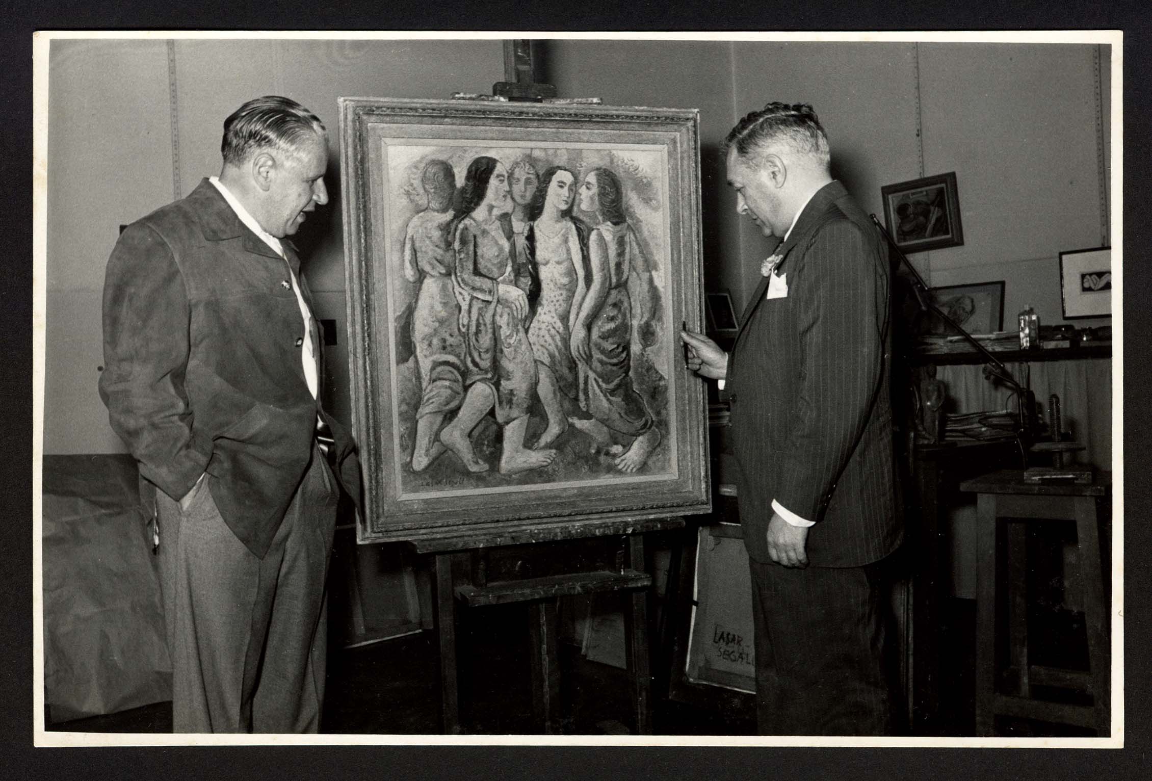 OBSERVAÇÕES RELACIONAL : outras cópias: F.00208.02 / RELACIONA-SE COM : outras cópias: F.00208.02 / ASSUNTO : Lasar Segall e sua obra | Ateliê São Paulo / OBSERVAÇÕES GERAIS(v309) : a informação sobre a personalidade fotografada ao lado de Lasar Segall foi obtida no álbum III à p. 73 | na fotografia aparece uma tela Cinco figuras; 1942 | digitalizada em 14-12-2004 / OBSERVAÇÃO DATA(duvida/cerca/dedicatória) : cerca^SF.-XX203.01