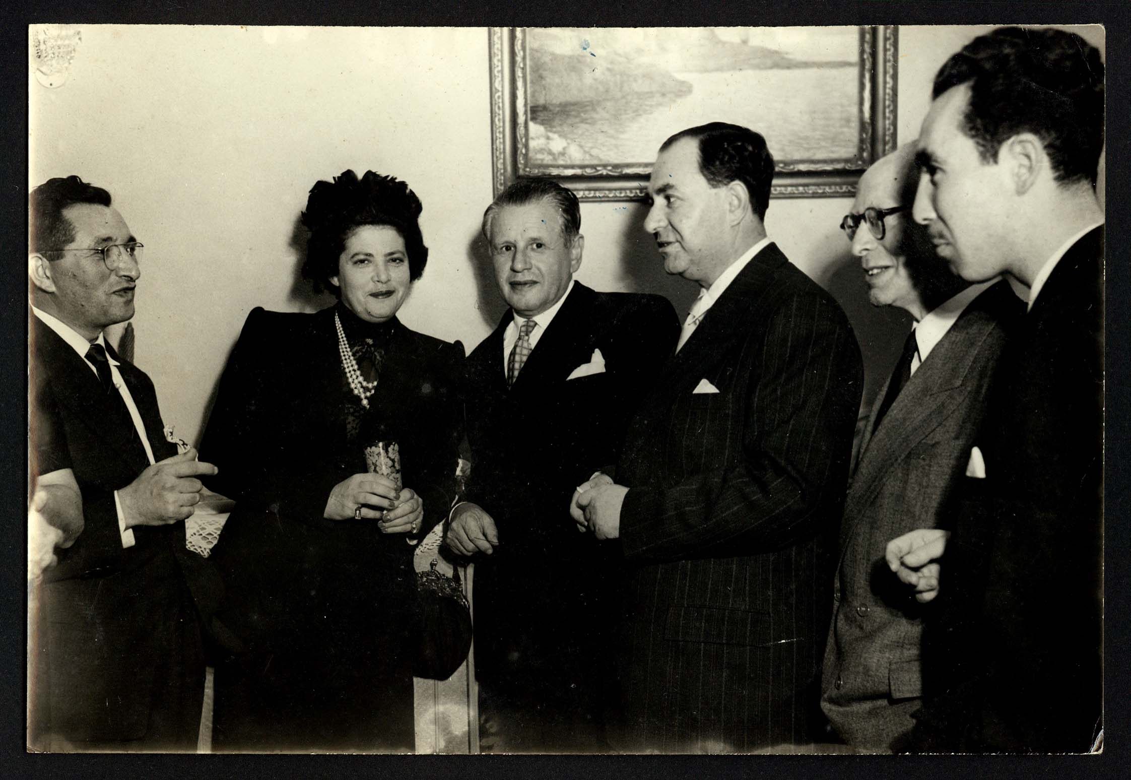 ASSUNTO : Lasar Segall | exposições | exposição 1948 - Nova York / OBSERVAÇÃO DATA(duvida/cerca/dedicatória) : data exata / OUTRO TÍTULOS : Segall entre grupo de visitantes durante a exposição na Associated American Artists Galleries; em Nova Iorque