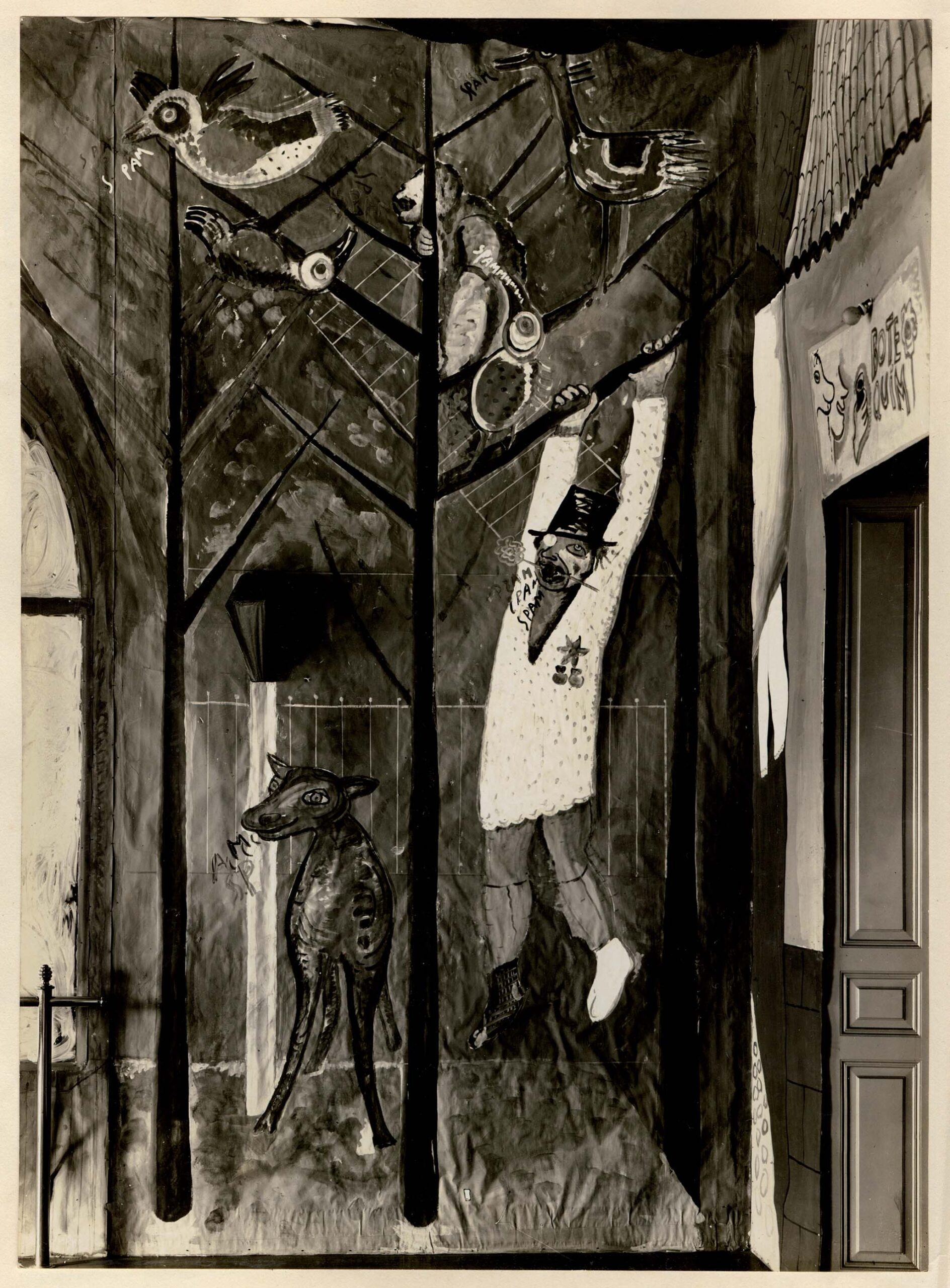 Parte direita do painel "Jardim zoológico"; de autoria de Lasar Segall. Baile Carnaval na Cidade de SPAM; de 16/02/1933.