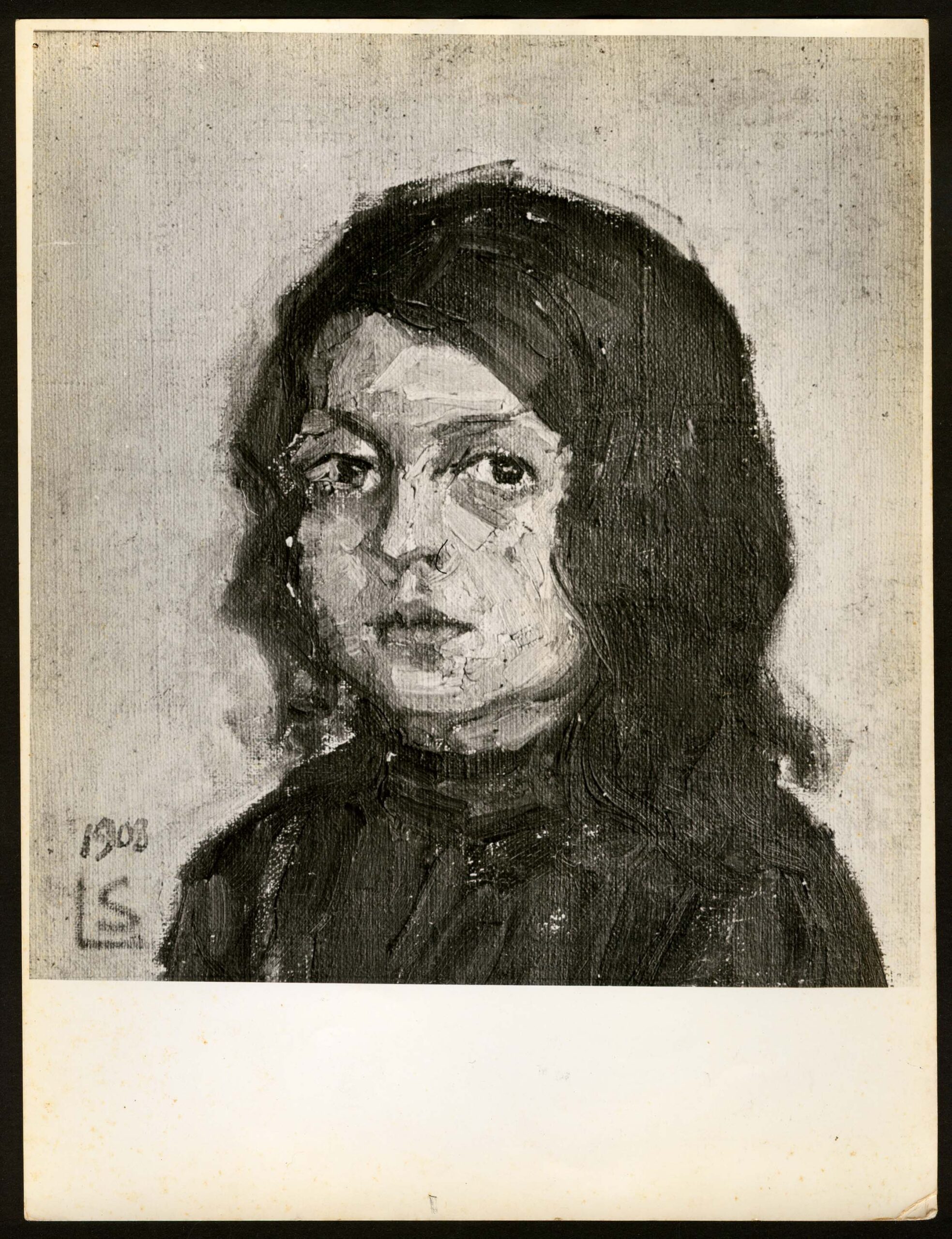 Jenny Klabin Segall; Cabeça de menina; 1908 - Col. Lisa S. Abranison; São Paulo 0;37 x 0;34; inscrição a lápis que completa o carimbo