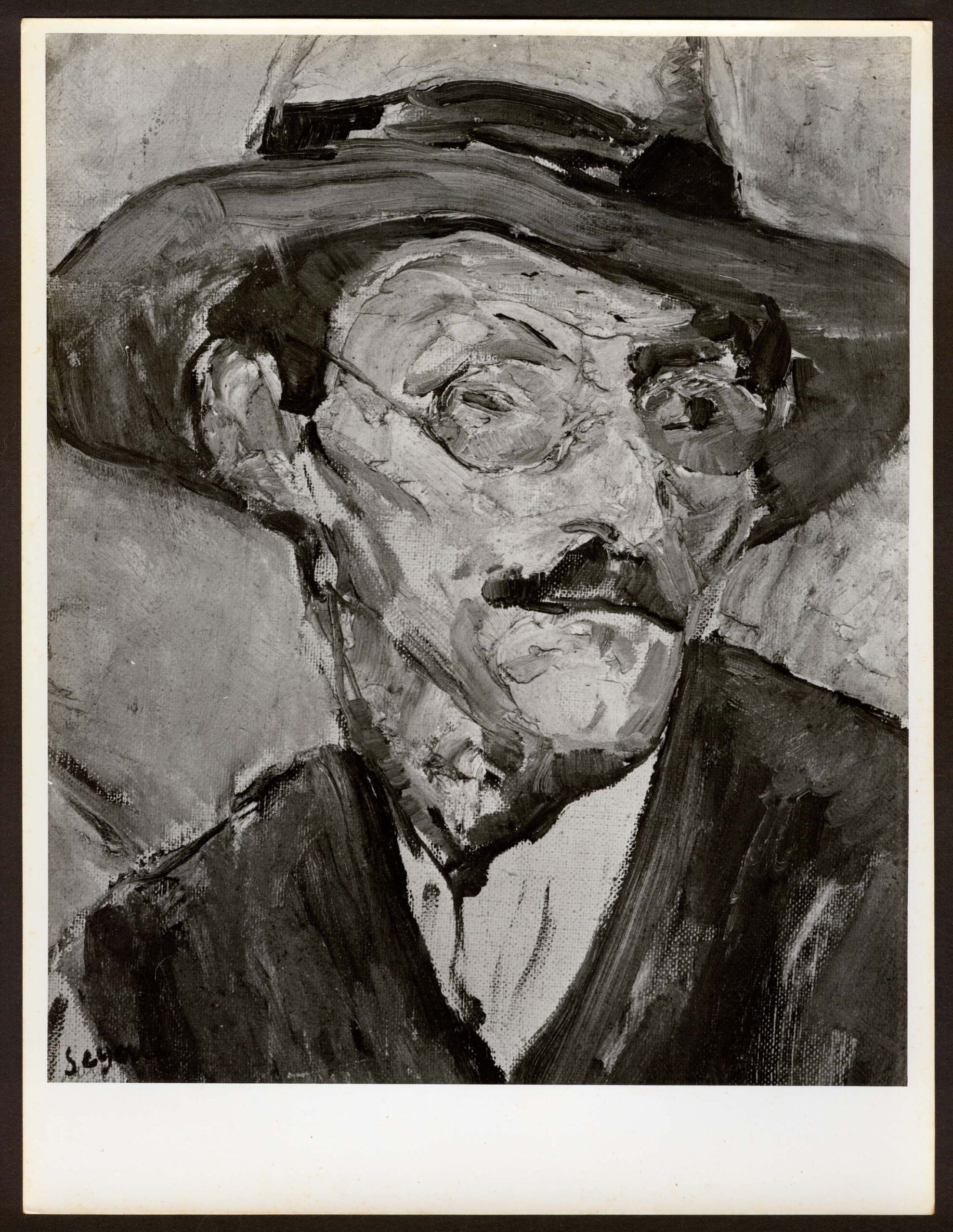Carimbo--Suporte primário verso--M.s.e--MIROSLAV JAVUREK - FOTOGRAFIA - CINEMATOGRAFIA - Rua João Passalacqua; 189 - Ap. 3 - Bela Vista - SÃO PAULO - Brasil--Carimbo--Suporte primário verso--C.s.d--18000--Carimbo--Suporte primário verso--M.i.e--Lasar Segall - 1891-1957 - Título da Obra:--Inscrição--Suporte primário verso--M.i.e--Cabeça de homem de - chapéu 1909 (0;35 x 0;28)--Inscrição à lápis que completa o carimbo--Inscrição--Suporte primário verso--C.i.e--F3568-1--À lápis--Inscrição