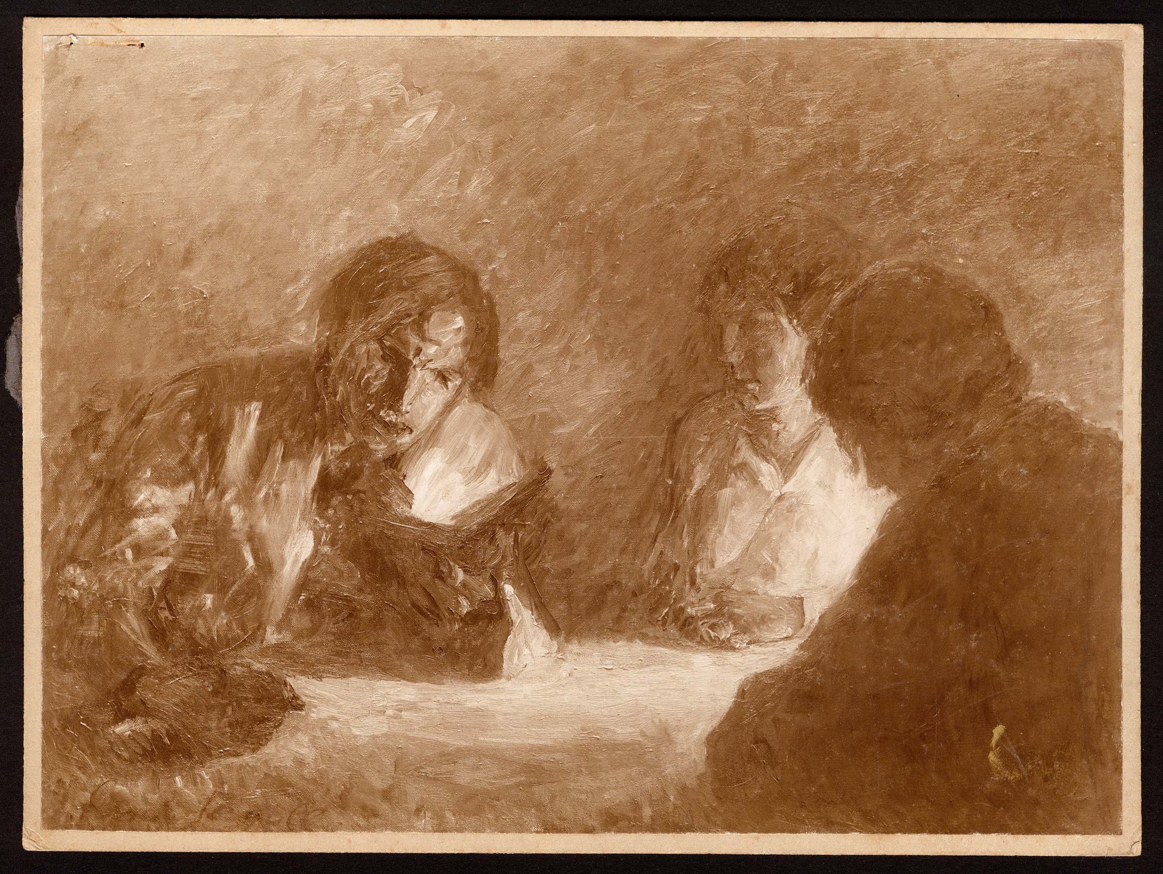 Carimbo--Suporte secundário verso--M.s.e--LASAR SEGALL--Carimbo em formato redondo--Inscrição--Suporte secundário verso--C.s.d--Nº 3--À lápis--Inscrição--Suporte secundário verso--M.i.e--F3585-1--À lápis--Carimbo--C.s.e--LASAR SEGALL--Carimbo em formato redondo; no verso de um fragmento de papel azul colado no verso do suporte secundário--Carimbo--M.i.e
