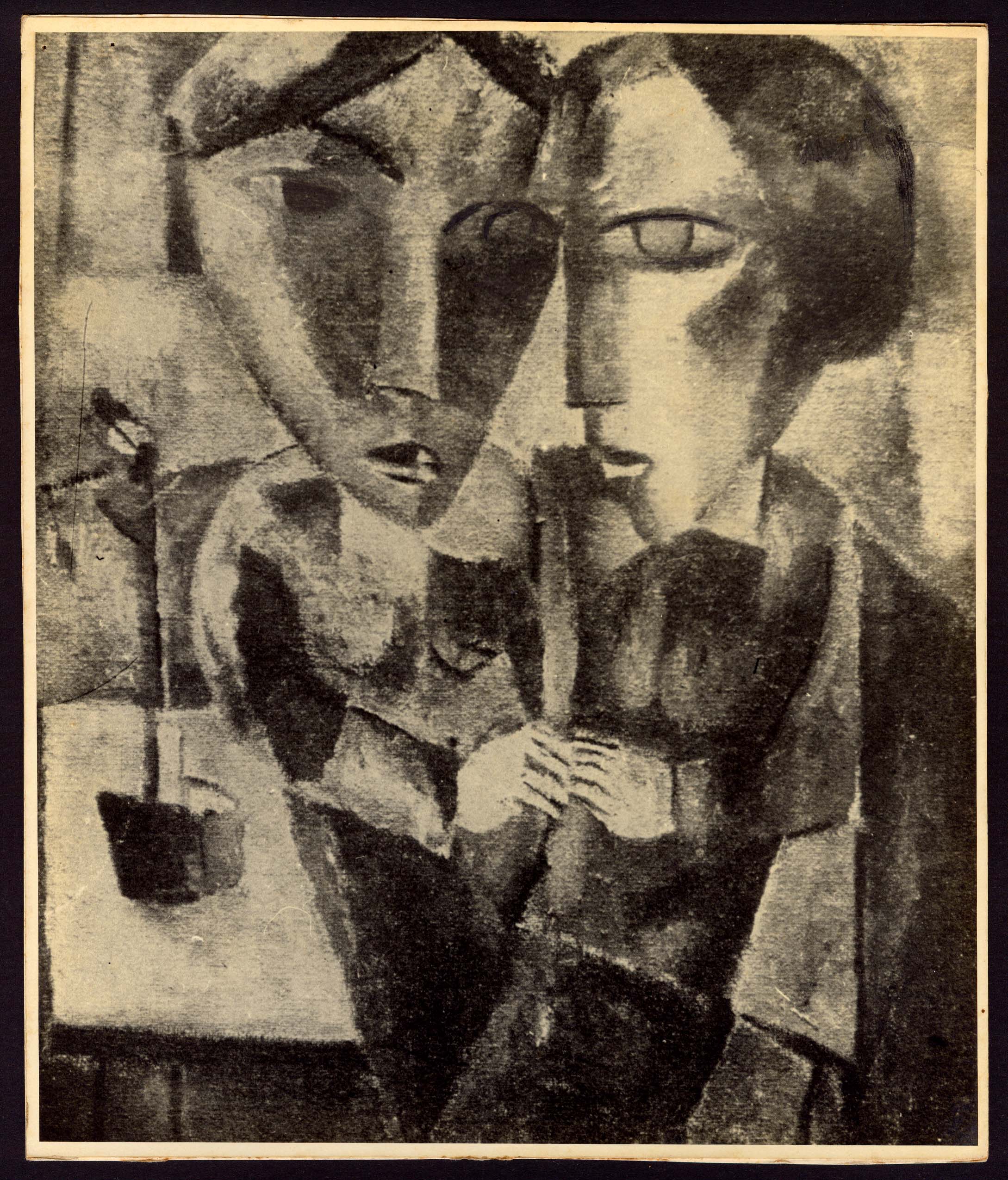 Inscrição--Suporte secundário verso--C.s.e--Nº 22--À lápis--Carimbo--Suporte secundário verso--M.s.e--LASAR - SEGALL--Carimbo em formato redondo--Carimbo--Suporte secundário verso--C.i.e--Lasar Segall - 1891-1957 - Título da Obra:--Inscrição--Suporte secundário verso--M.i.e--DUAS IRMÃS 1919-20 - Col. Garvens Garvensberg; Hannover--Inscrição à lápis que completa o carimbo--Inscrição--Suporte secundário verso--C.i.e--F3611-1
