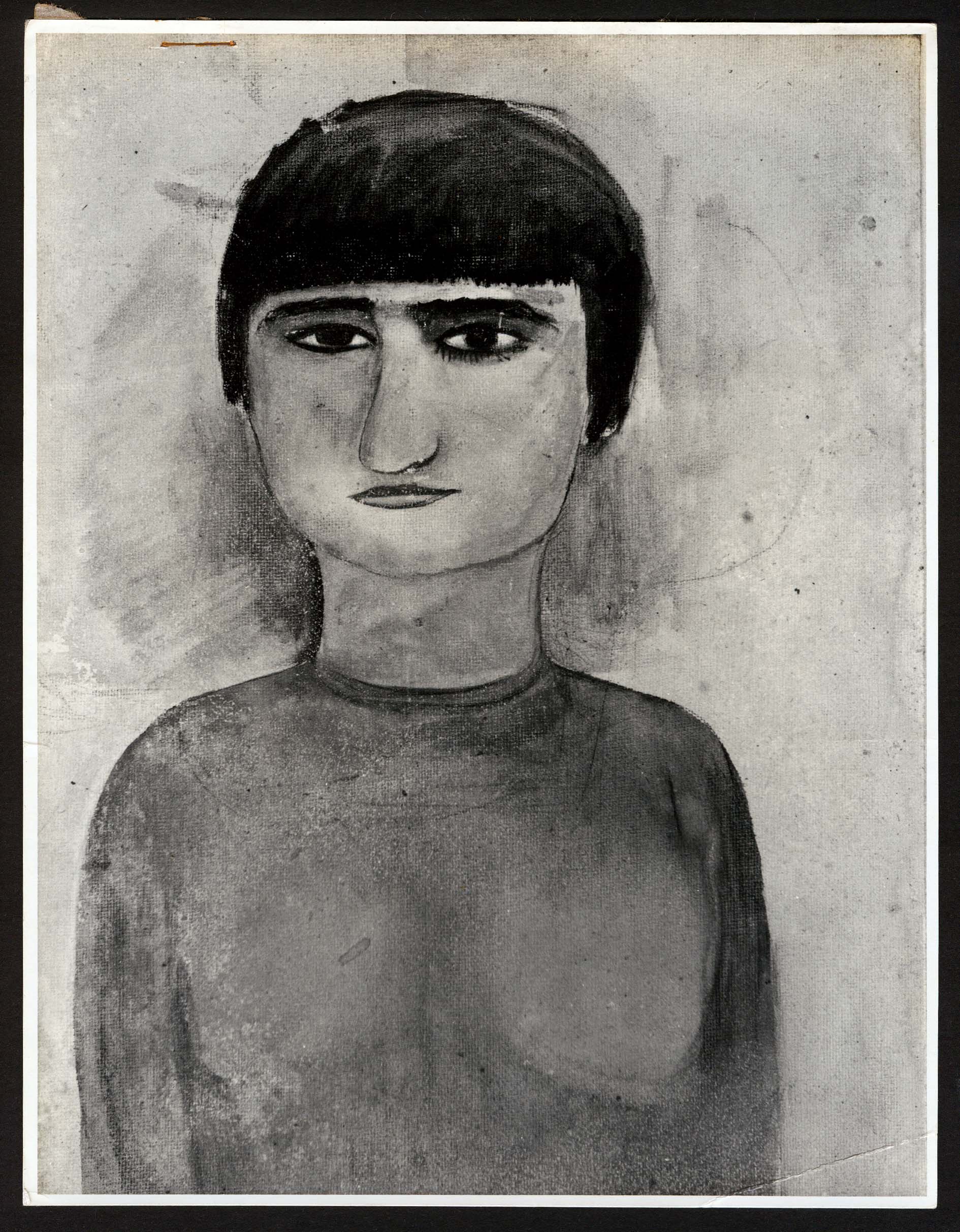 Inscrição--Suporte primário verso--M.i.e--Lote nº 6 - RETRATO DE WALESKA GERT - Lote - Óleo - nº 6 COL: Carlos Taub--À lápis--Inscrição--Suporte primário verso--C.i.e--F3614-1--À lápis