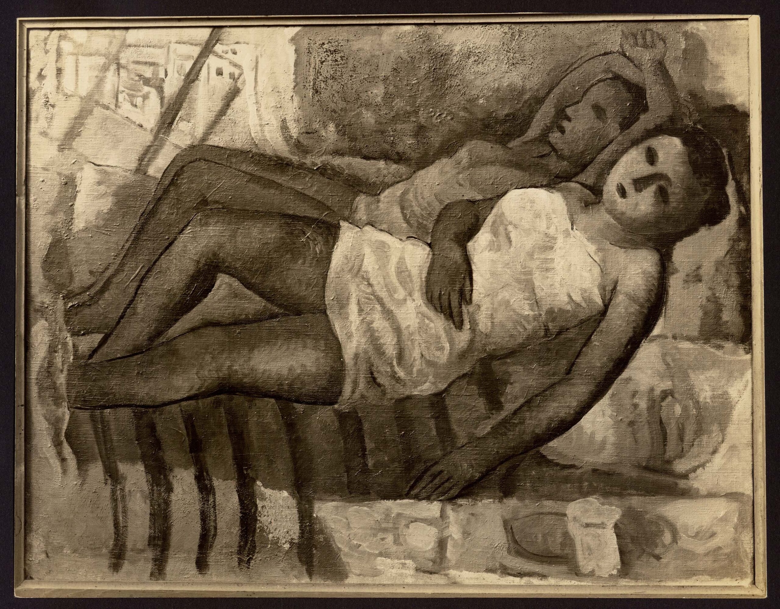 Inscrição--Suporte primário verso--M.s.e--Nº 156 - 1955--À lápis--Carimbo--Suporte primário verso--M.s.e--LASAR - SEGALL--Carimbo em formato redondo--Carimbo--Suporte primário verso--Ct--FOTO - STUDIO FOTOGRAFIAS - TECHNICAS E - INDUSTRIAES - H. ZANELLA - AV. PAES DE BARROS; 14 - Telephone: 8-0920 - S. PAULO--Carimbo--Suporte primário verso--M.i.e--Lasar Segall - 1891-1957 - Título da Obra:--Inscrição--Suporte primário verso--M.i.e--No divã 1935 - (0;50 x 1;65)--Inscrição à lápis que completa o carimbo