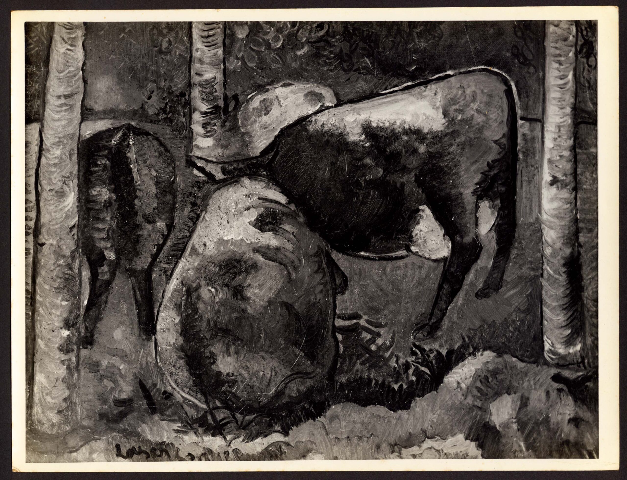 Bois entre troncos de árvores; c.1945