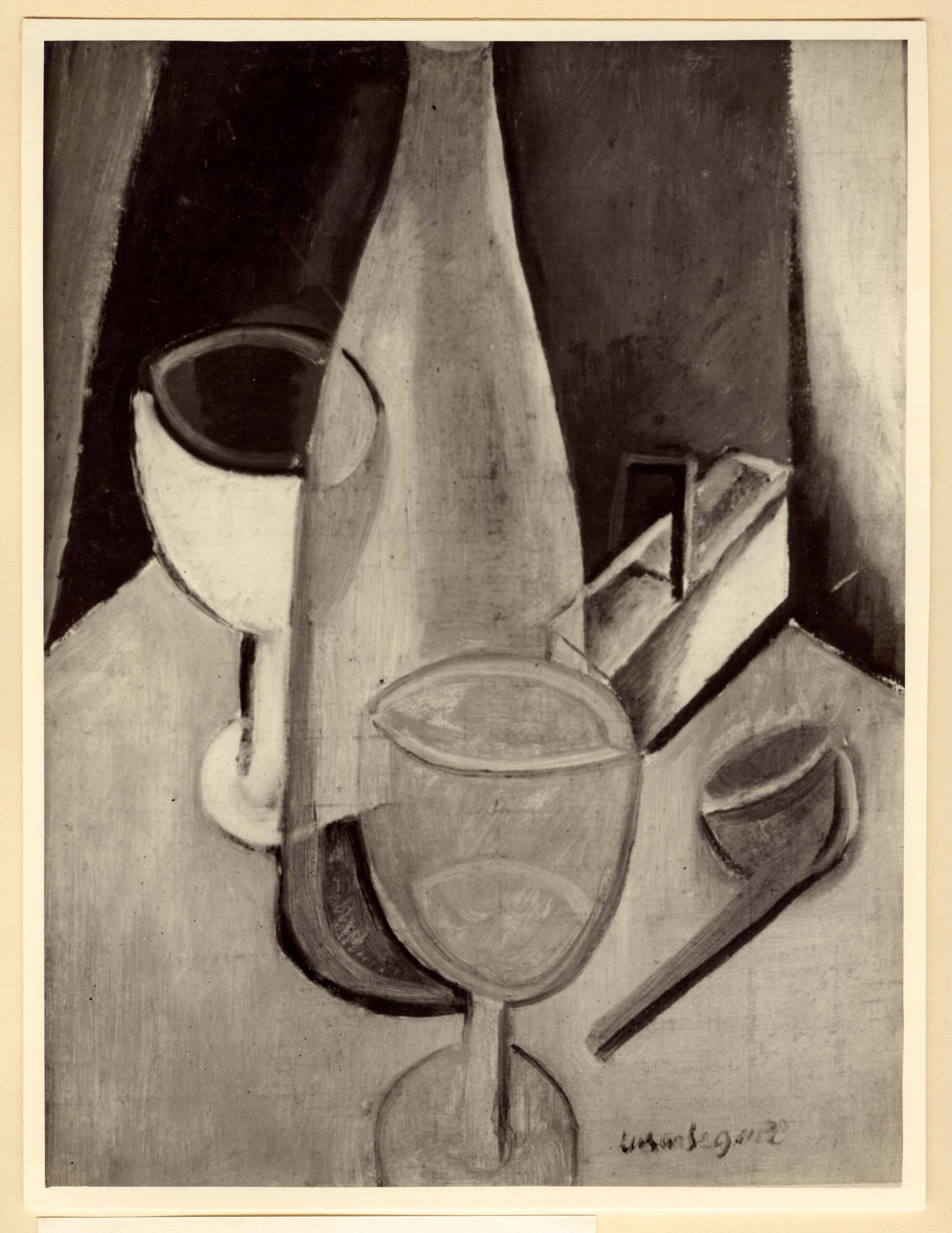 Natureza morta com garrafa e copo branco; 1954