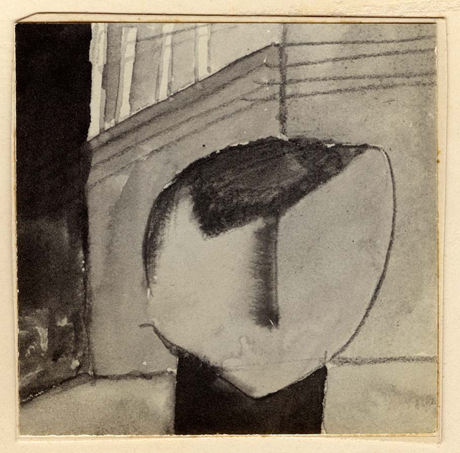 Cabeça com casas e fios elétricos; c.1920