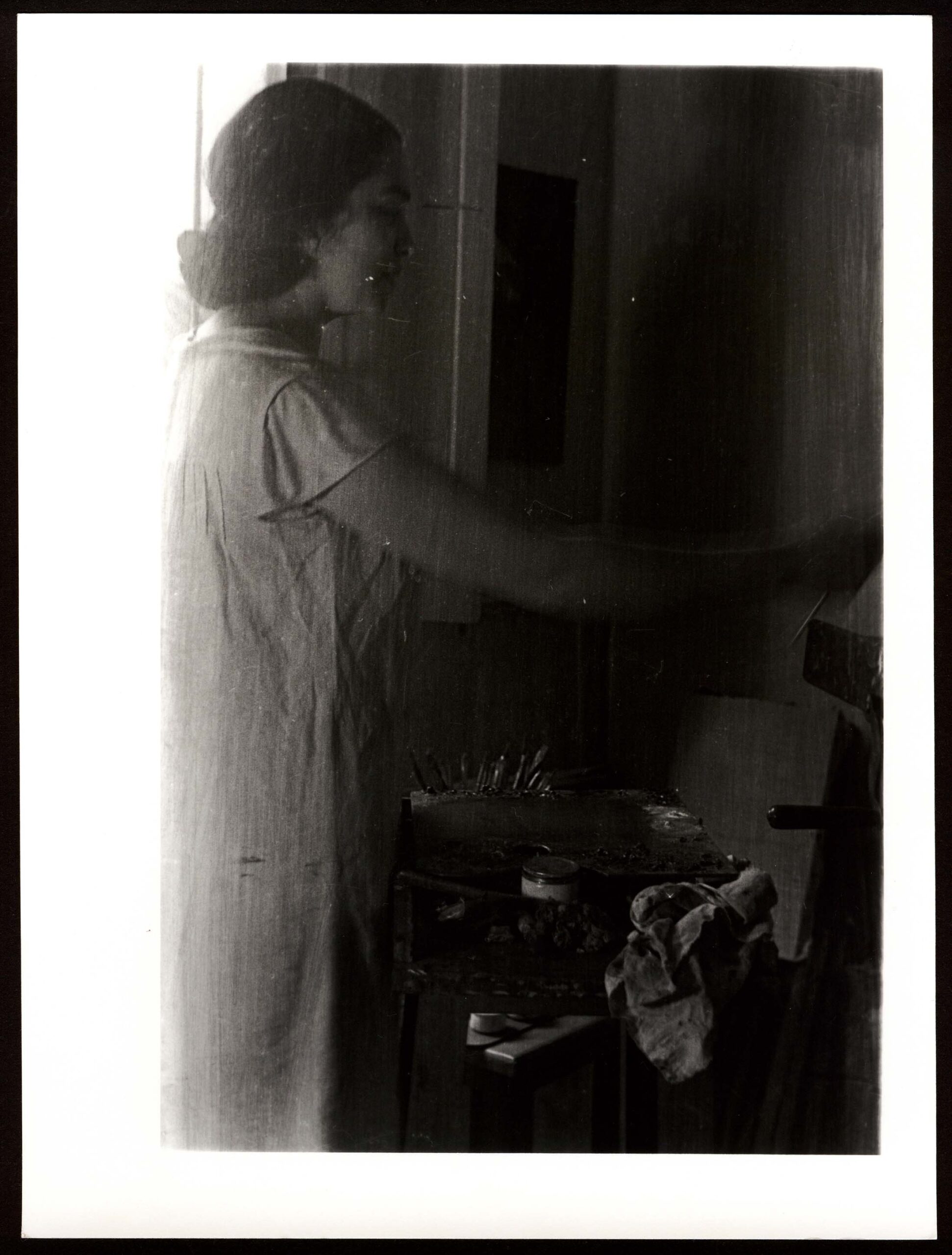 Lucy pintando em seu ateliê