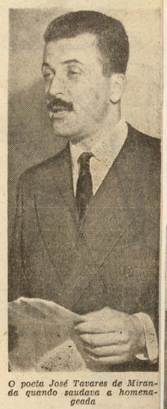 O poeta José Tavares de Miranda quando saudava a homenageada