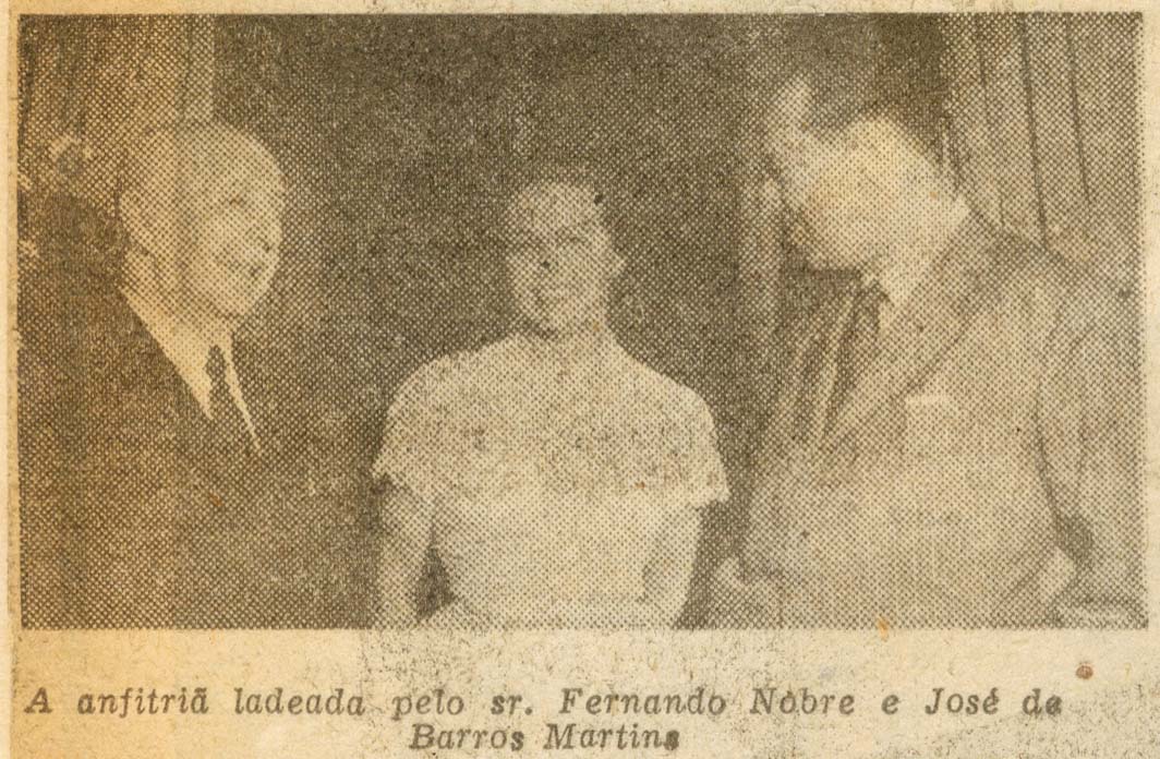 A anfitriã ladeada pelo sr. Fernando Nobre e José de Barros Martins