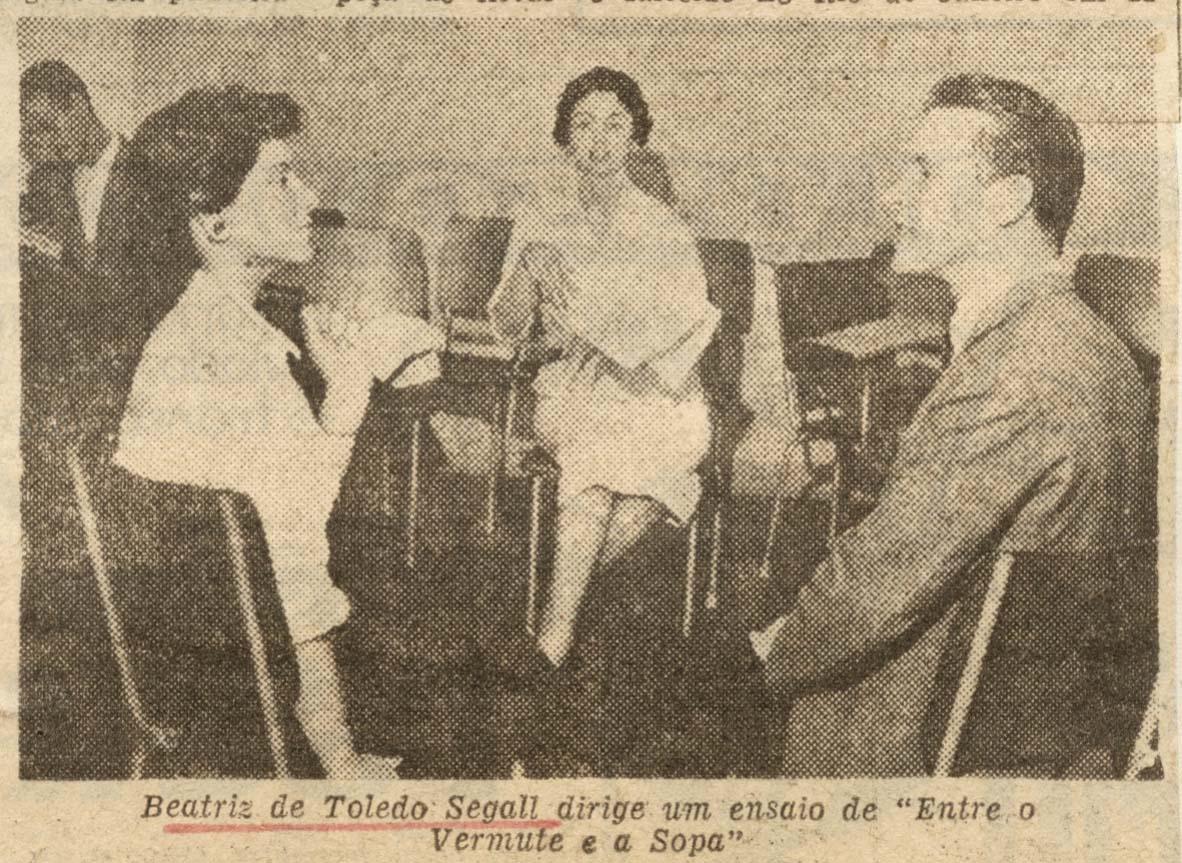 Beatriz de Toledo Segall dirige um ensaio de "Entre o Vermute e a Sopa"